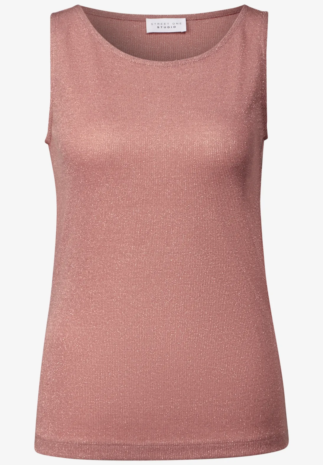 Vrouwelijke Street One Studio top met een ronde hals en een fijne glitterdetails en een geribde textuur. Deze Street One top is gemaakt van een aangename materiaalmix.