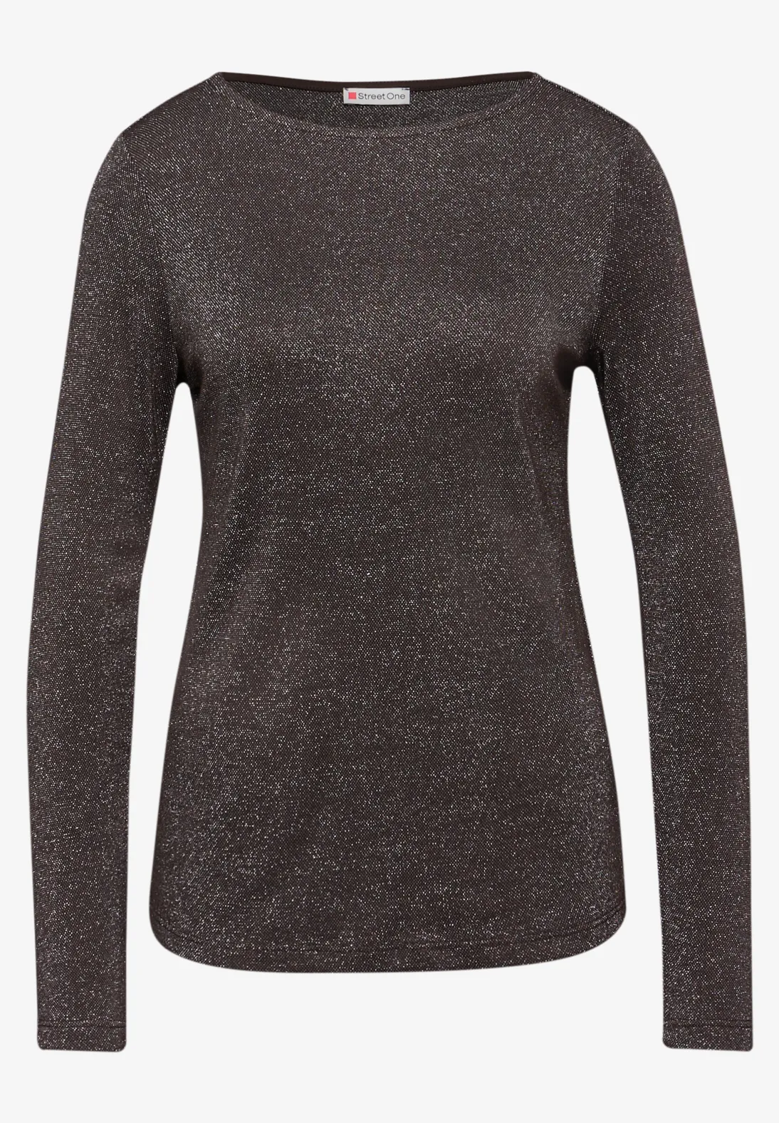 Street One Glittershirt met Lange Mouwen – Deep Roast Brown