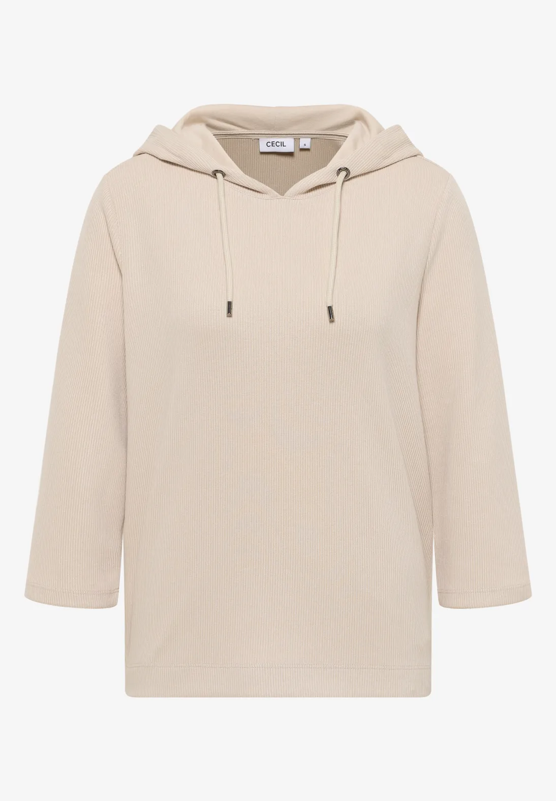Cecil shirt met 3/4-mouwen, een capuchon met trekkoord en een moderne geribde textuur. Dit Cecil shirt is gemaakt van een viscosemix met stretch.