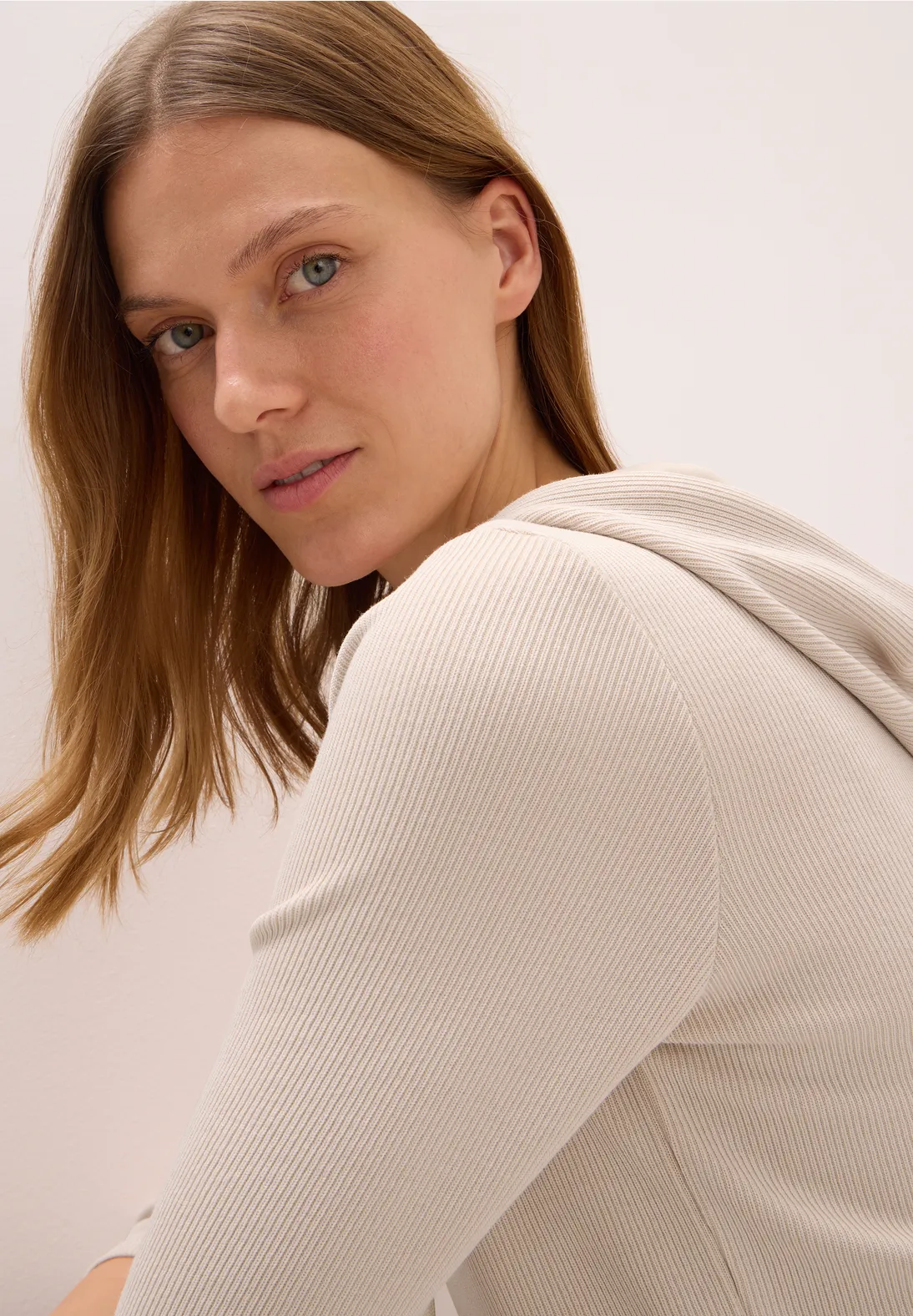 Denim/JeansRokken/JurkenVesten/TruienJassen/MantelsBlazersBeschrijvingHoodie Shirt Geribde Structuur - Oat Milk Beige