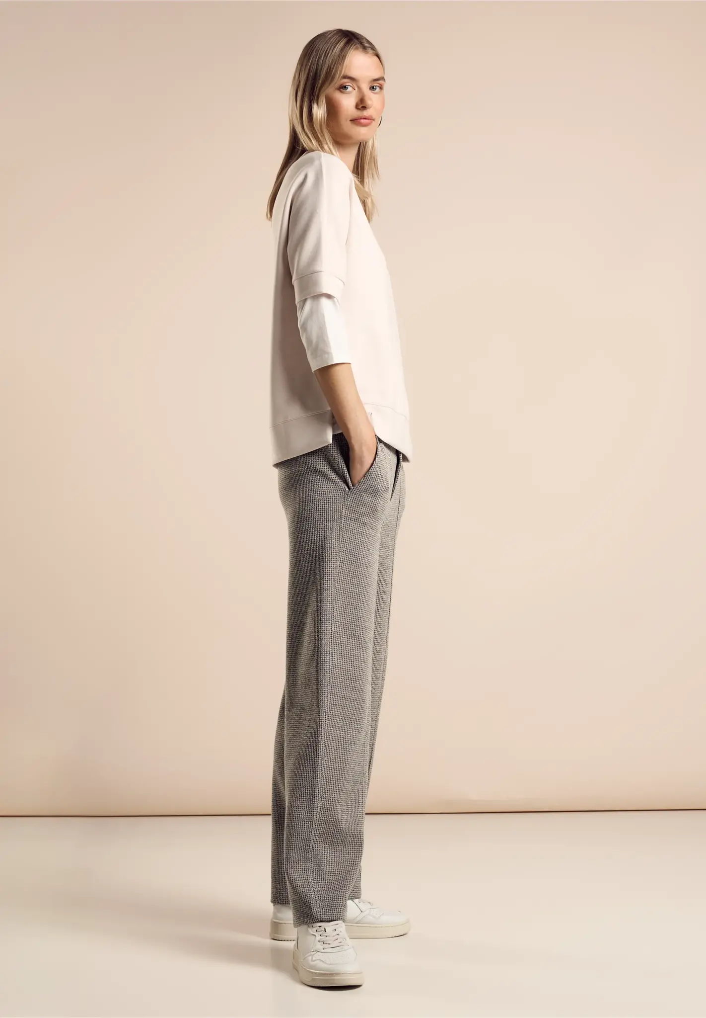 Street One jacquard broek met een loose fit, hoge taille en rechte broekspijpen. Deze Street One broek heeft steekzakken aan de zijkant en is gemaakt van een comfortabele katoenmix.