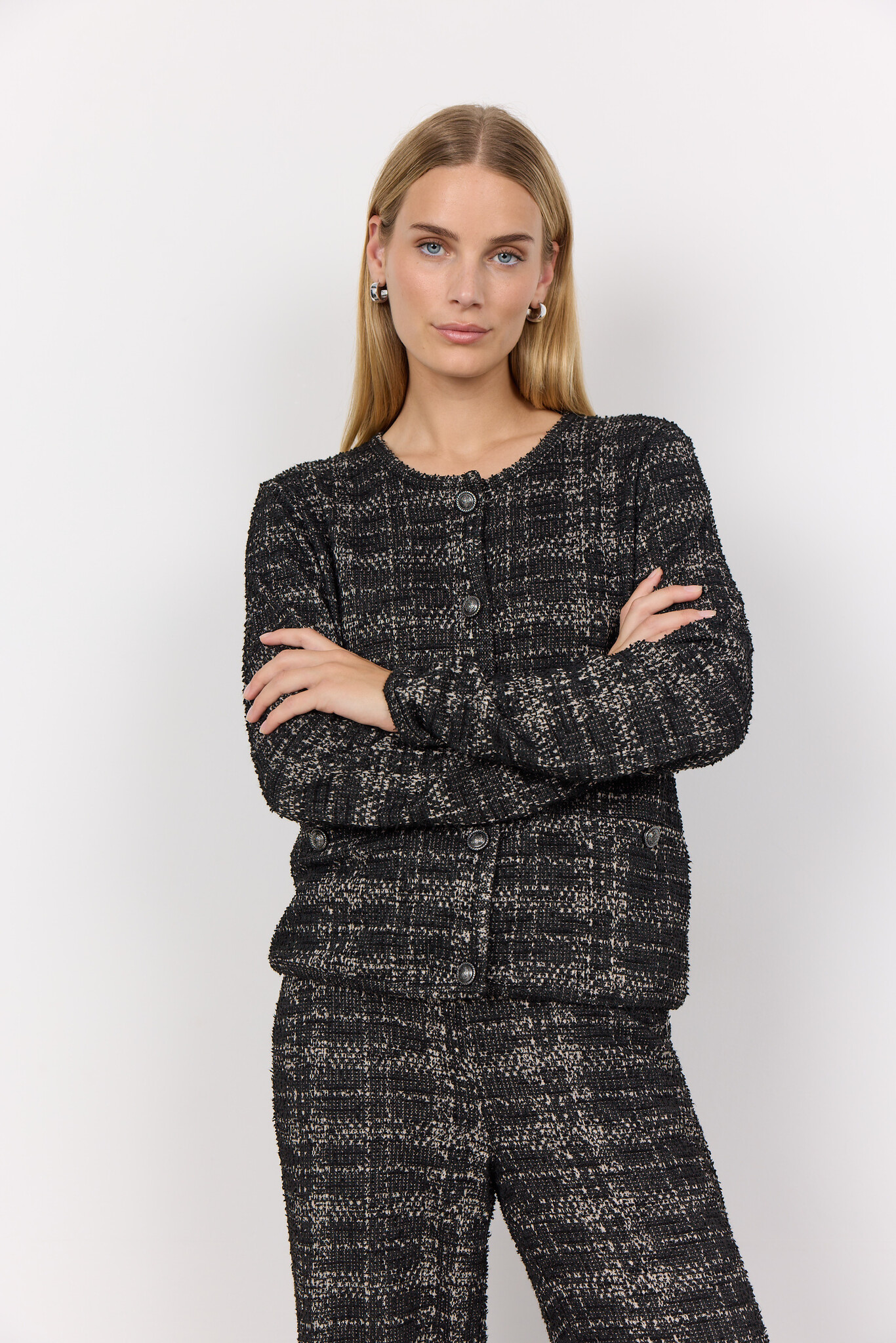 Soyaconcept SC-Nakia 1. Soyaconcept jasje met lange mouwen, een ronde hals en een knoopsluiting. De decoratieve zakjes met knoop maken het geheel compleet.
