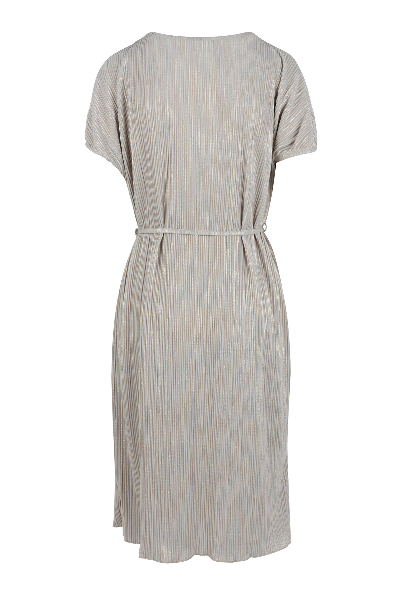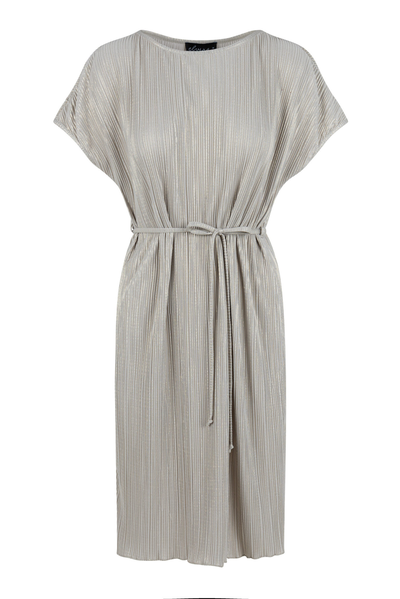 Elvira Collections Noesha. Elvira Collections jurk met korte mouwen, een ronde hals en een glanzende plissé structuur. Deze Elvira jurk heeft een afneembare ceintuur.