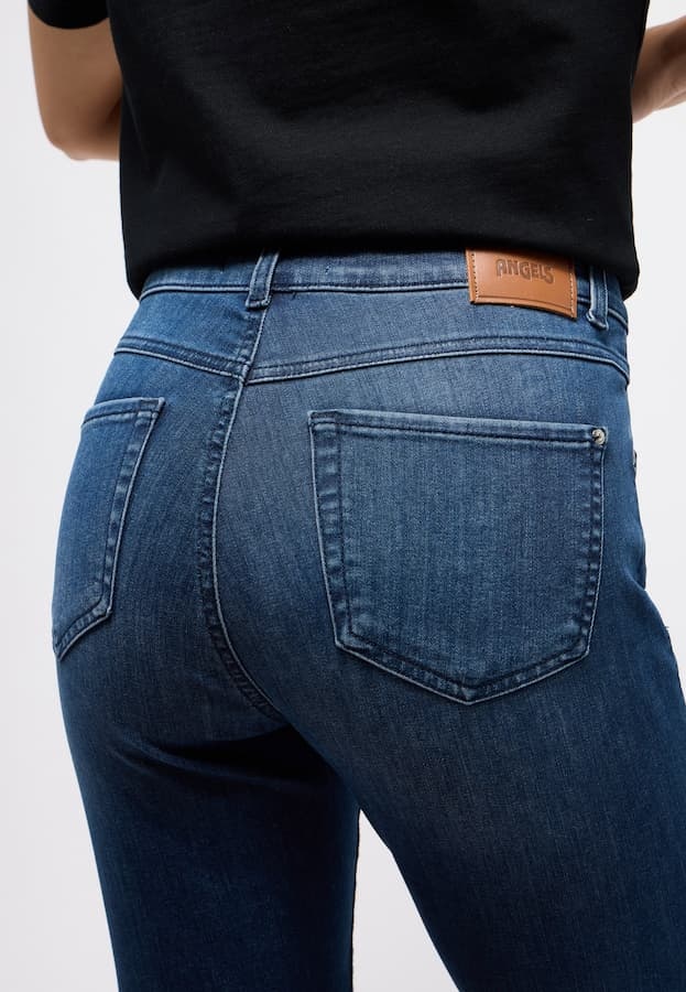 Angels Jeanswear Leni. Angels jeans met een straight fit, hoge taille en uitlopende, flared broekspijpen. Deze Angels jeans heeft een authentiek 5-pocket model. Dankzij het aandeel stretch heeft deze Angels Leni een hoog draagcomfort.