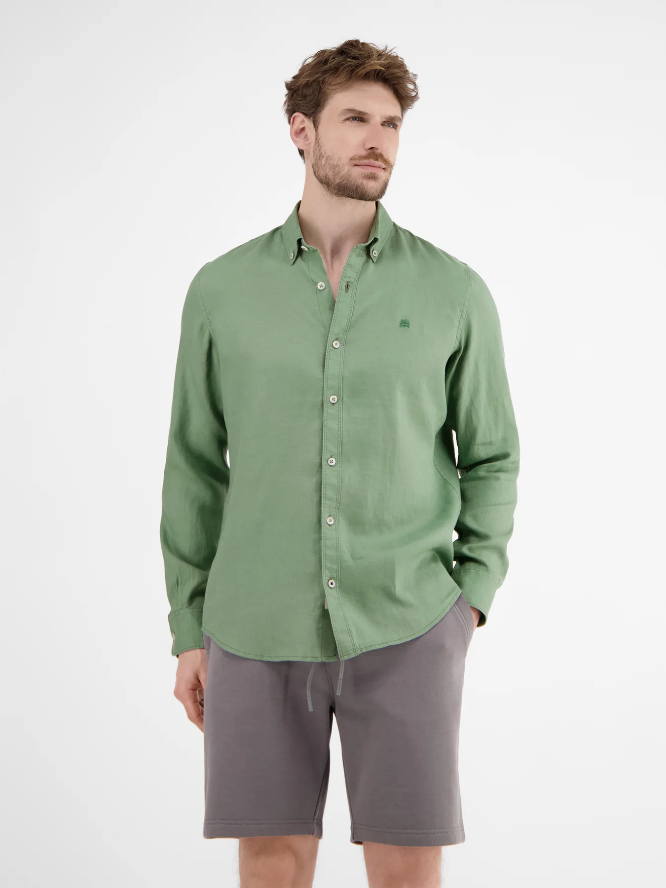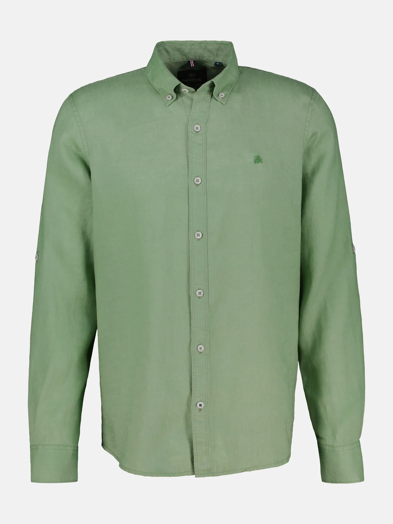 Lerros overhemd met een button-down kraag en lange mouwen met turn-up functie. Dit Lerros overhemd heeft verstelbare manchetten en is gemaakt van linnen en katoen.