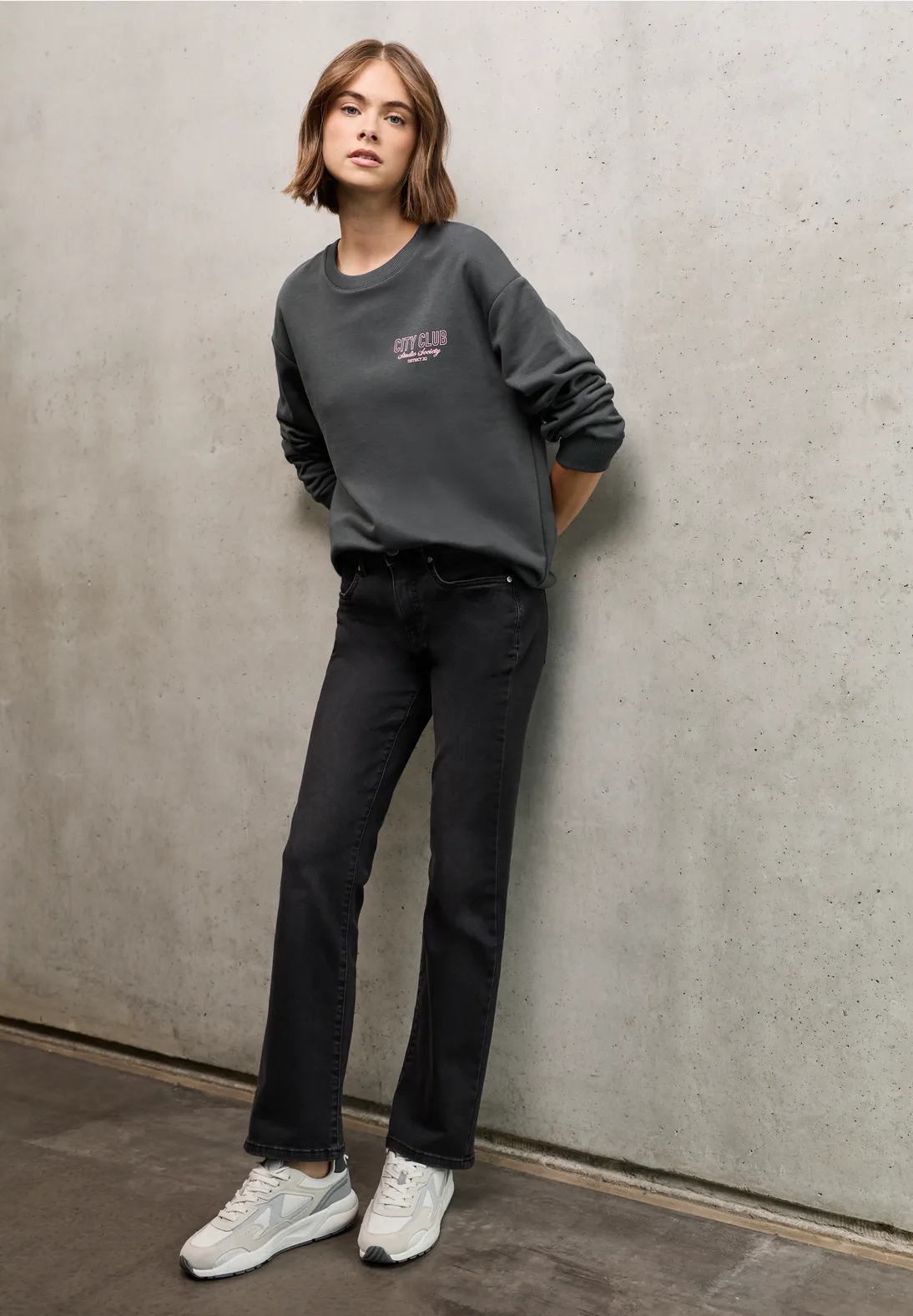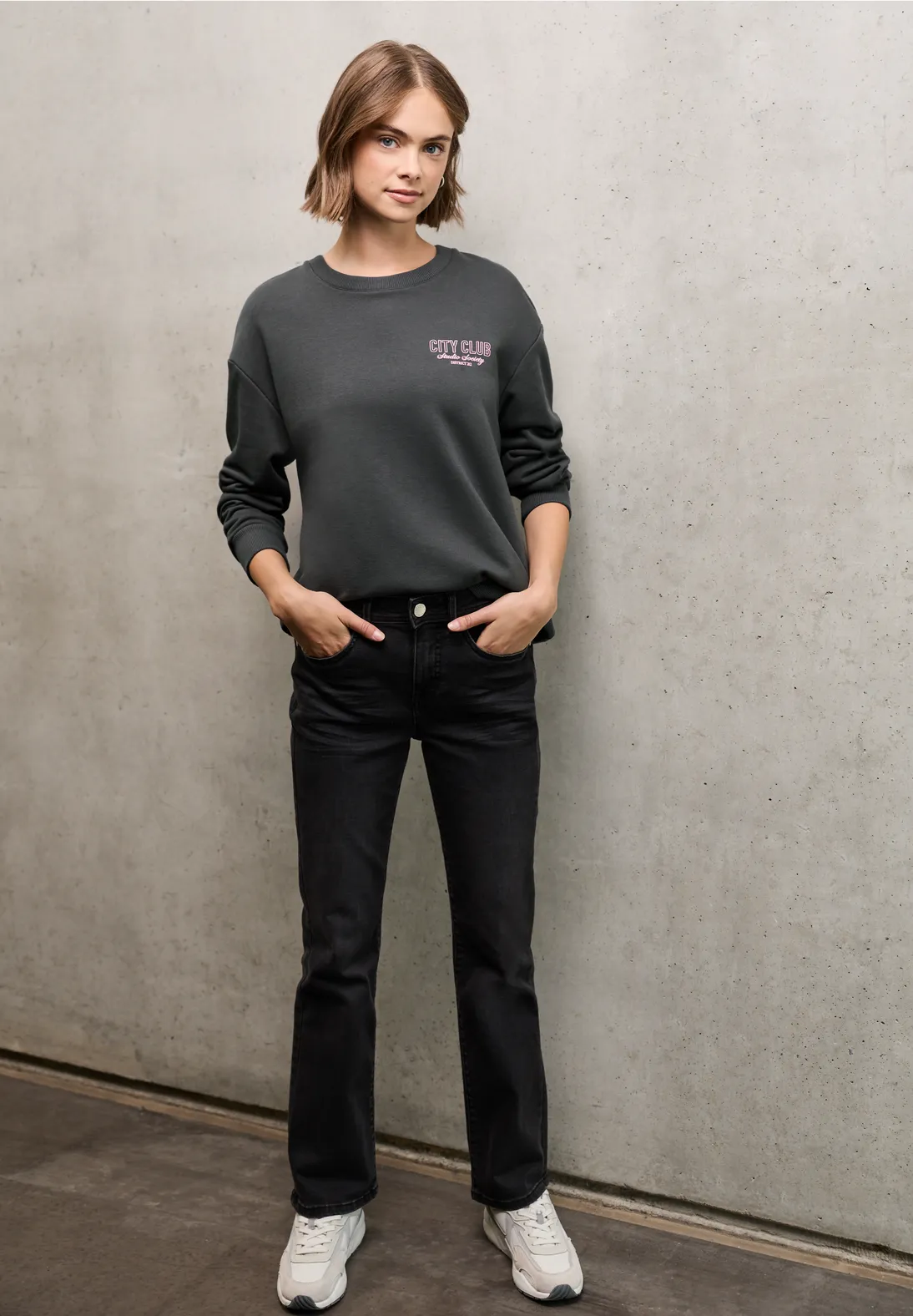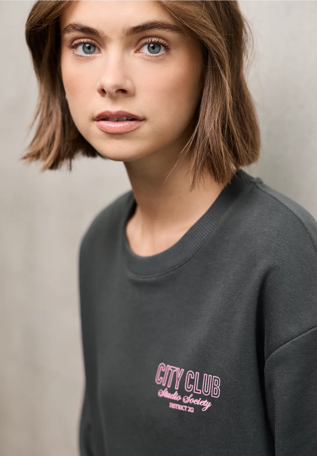 Street One Studio sweater met lange mouwen, een ronde hals en een grote print op de achterkant. De kleine print op de voorkant zorgt voor een casual highlight. Deze Street One Studio trui heeft een loose fit en is gemaakt van een zachte sweatstof.