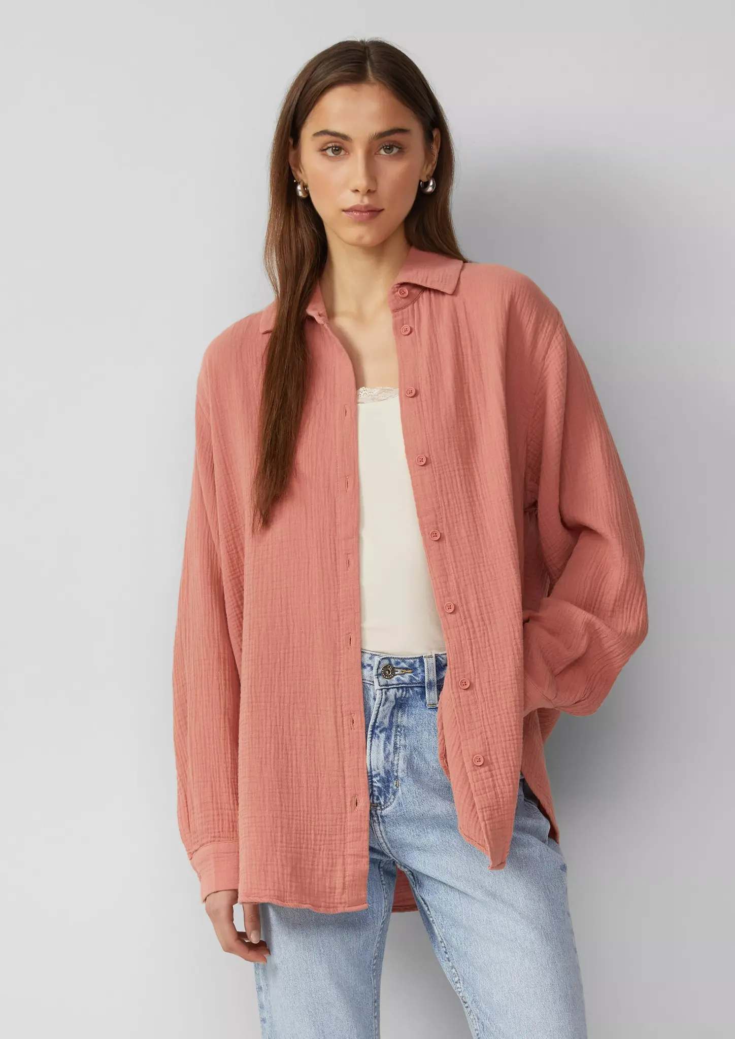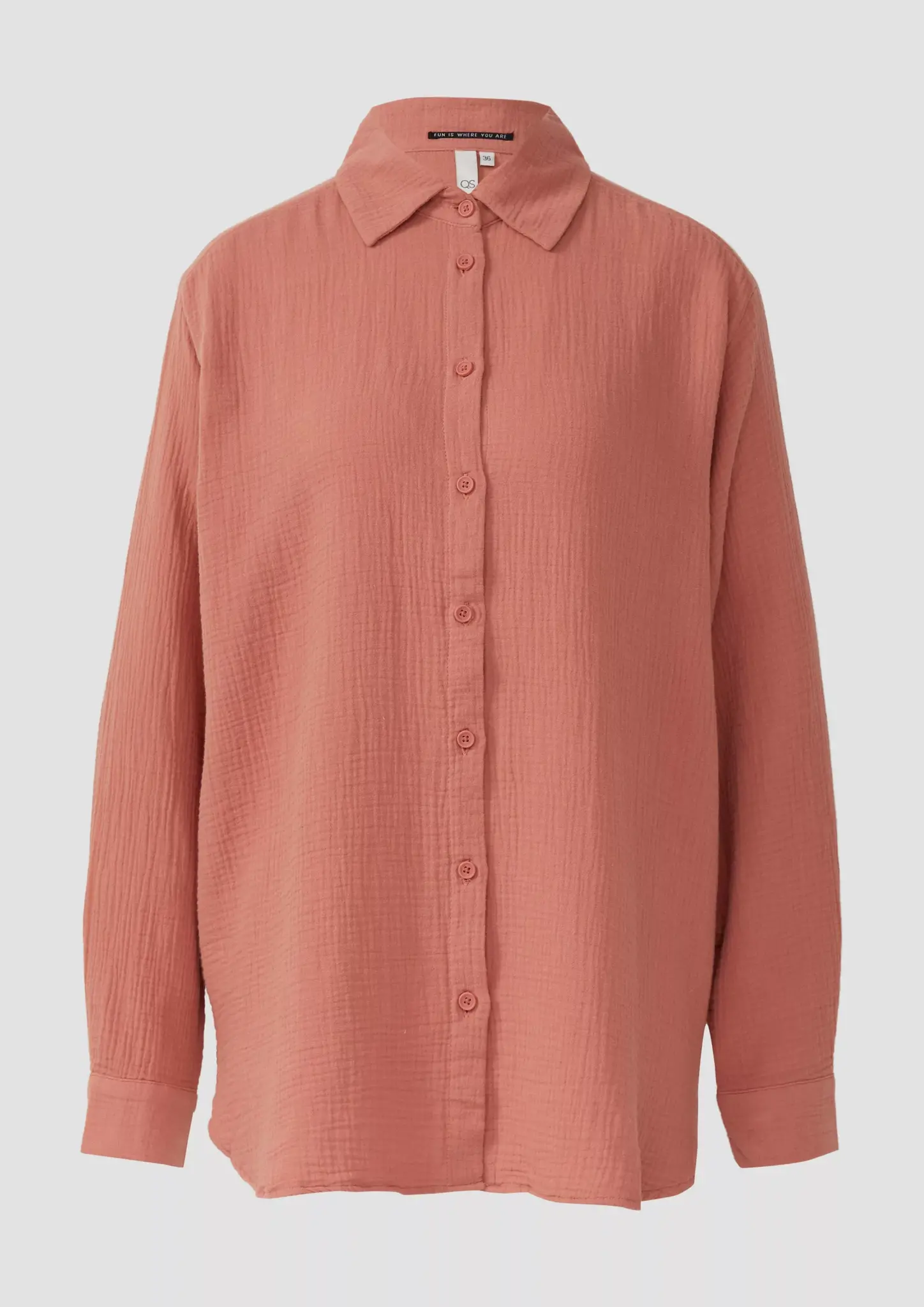 QS by S. Oliver blouse met lange mouwen, oversized schouders en een overhemdkraag met lange knoopsluiting. Deze QS blouse is gemaakt van zachte mousseline uit zuiver katoen.