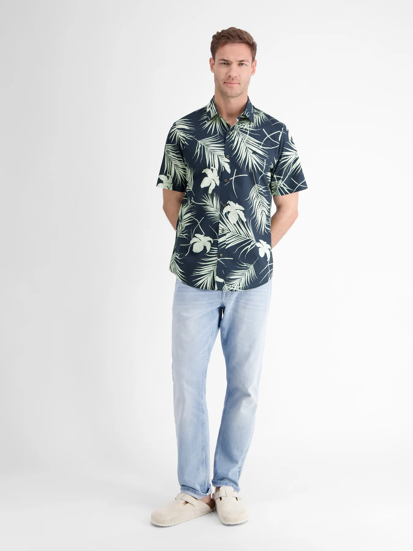 Lerros overhemd met korte mouwen, een kent kraag en zomerse Hawaii print. Gemaakt van een zomerse katoen kwaliteit.