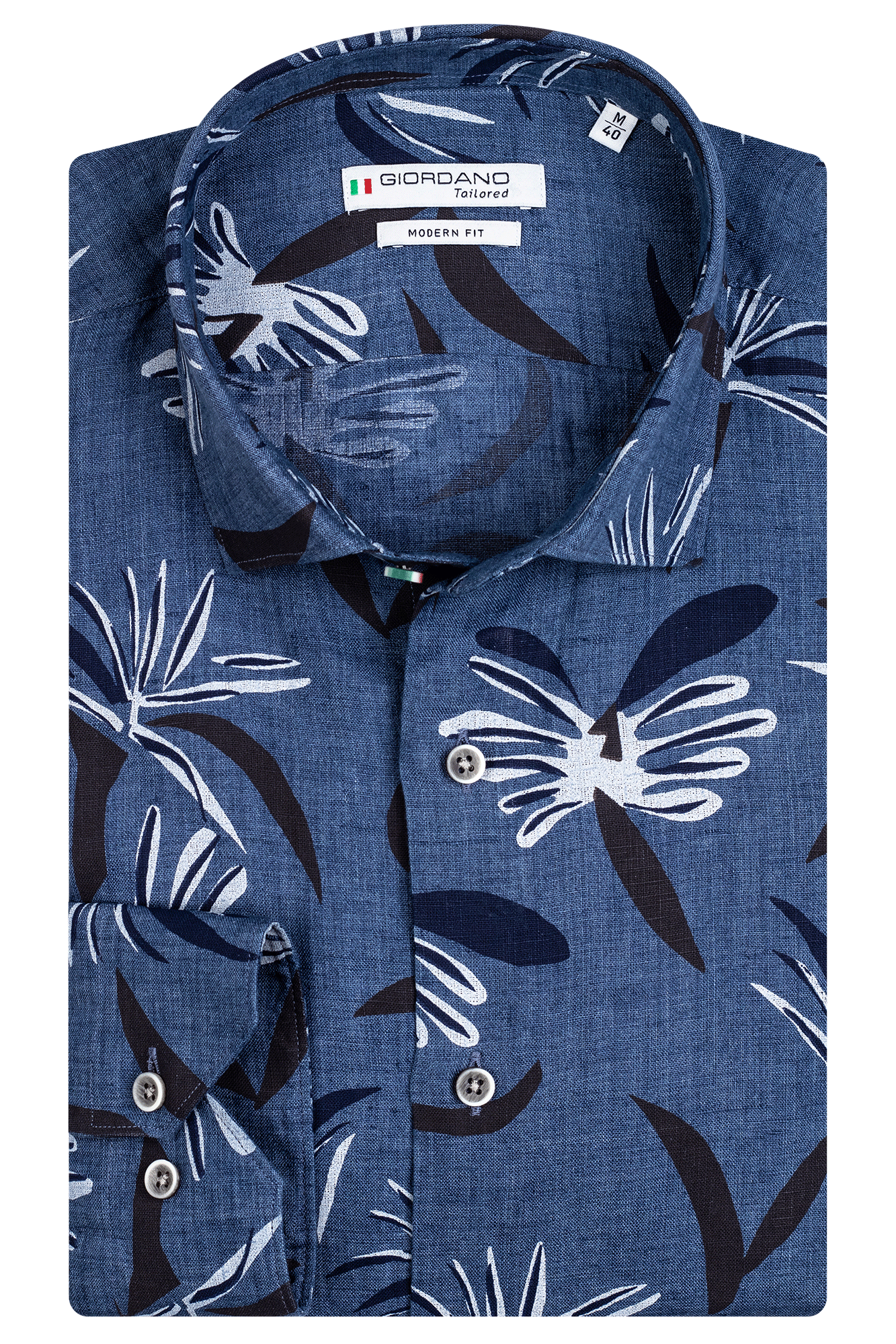 Giordano Print Overhemd. Giordano overhemd met lange mouwen, een cutaway kraag en een modern fit. Dit Giordano overhemd heeft een allover print en is gemaakt van linnen.