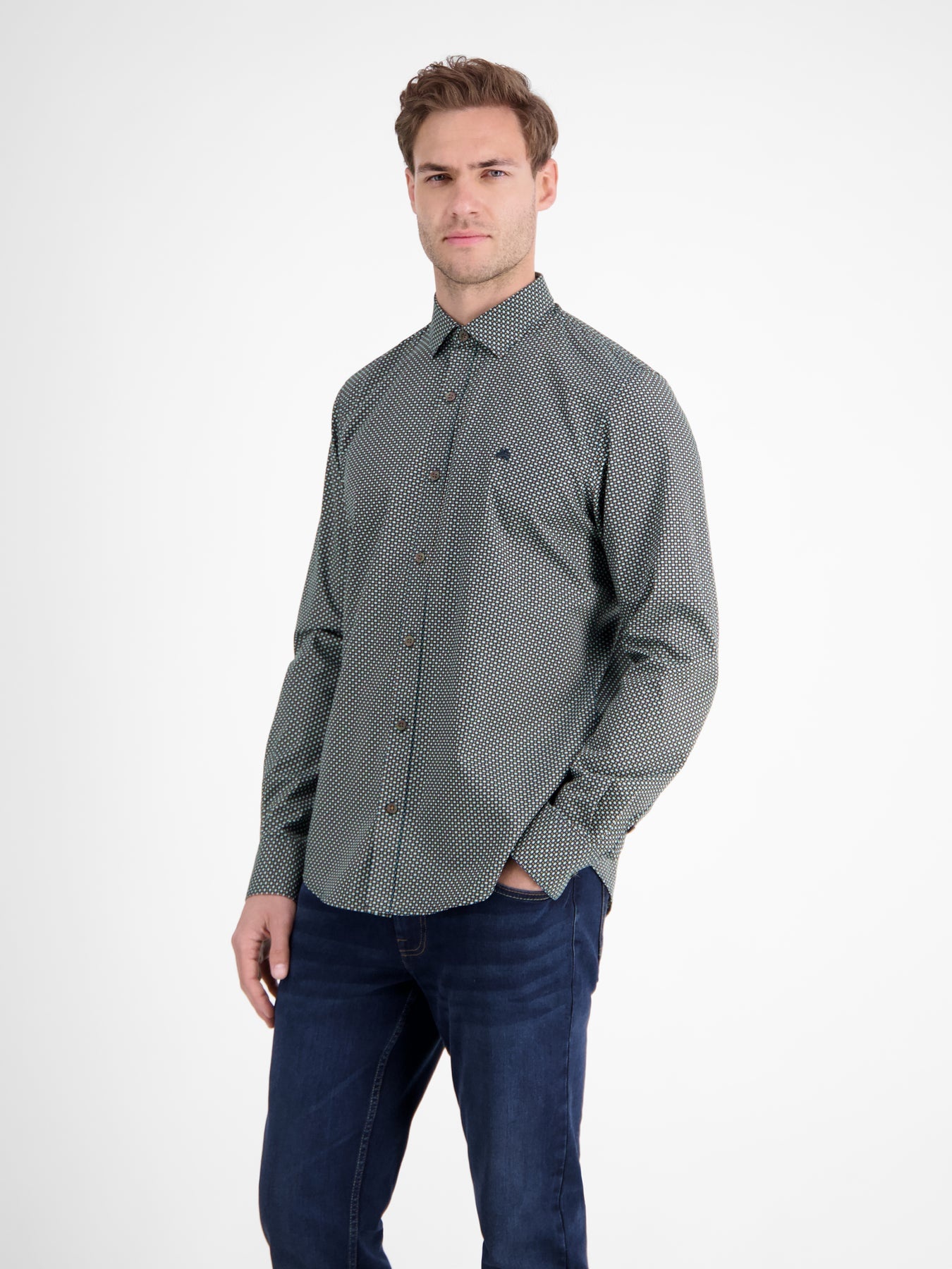 Lerros overhemd met lange mouwen, een kraag en een minimalistische allover print. Dit Lerros overhemd heeft verstelbare manchetten en is gemaakt van katoen.