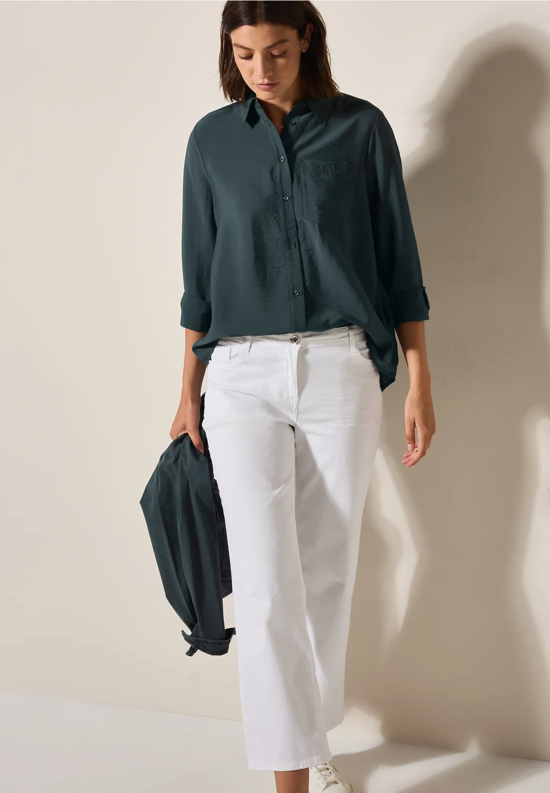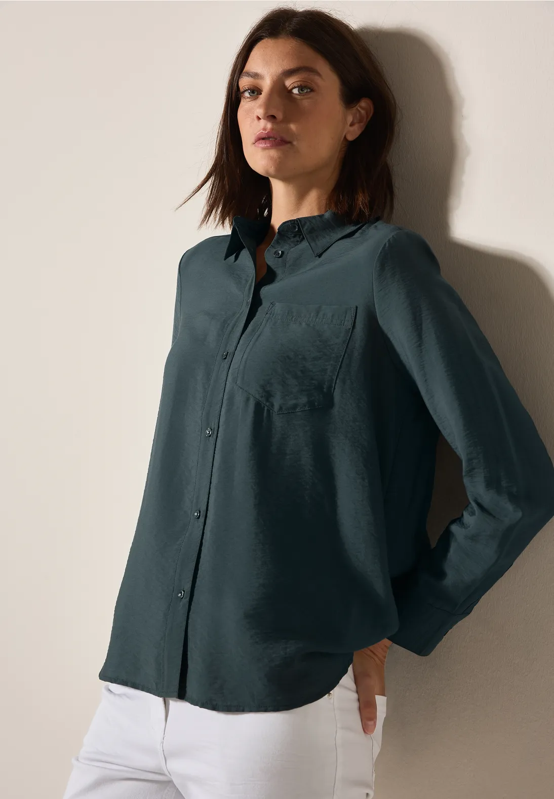 Lichtgewicgt Cecil blouse met lange mouwen, een overhemdkraag en een borstzak.