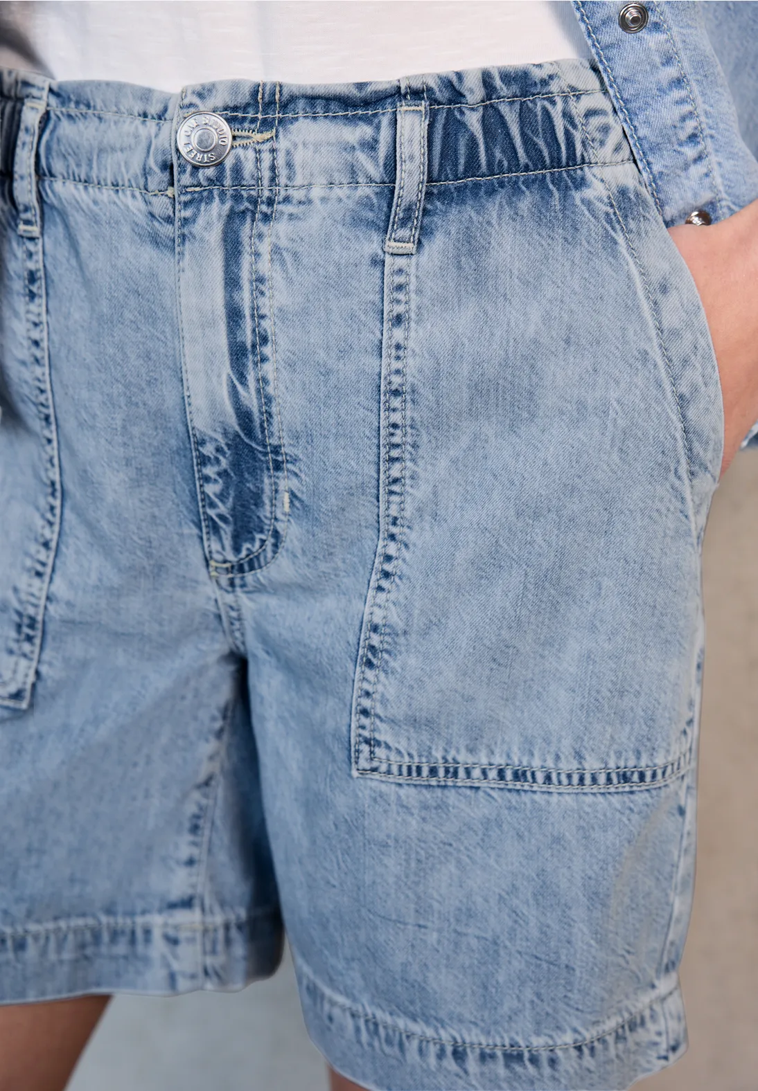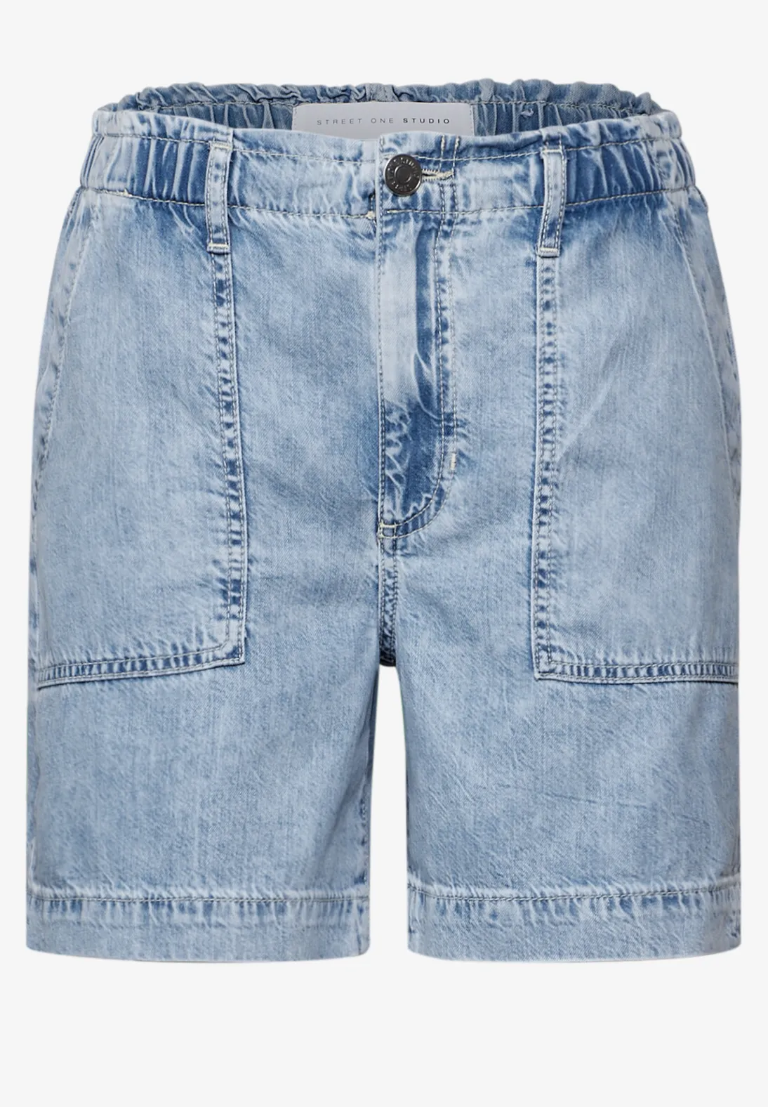 Street One Studio denim bermuda met een loose fit en een hoge, elastische taille. Deze Street One Studio korte broek heeft steekzakken en is gemaakt van een zomerse lyocellmix.