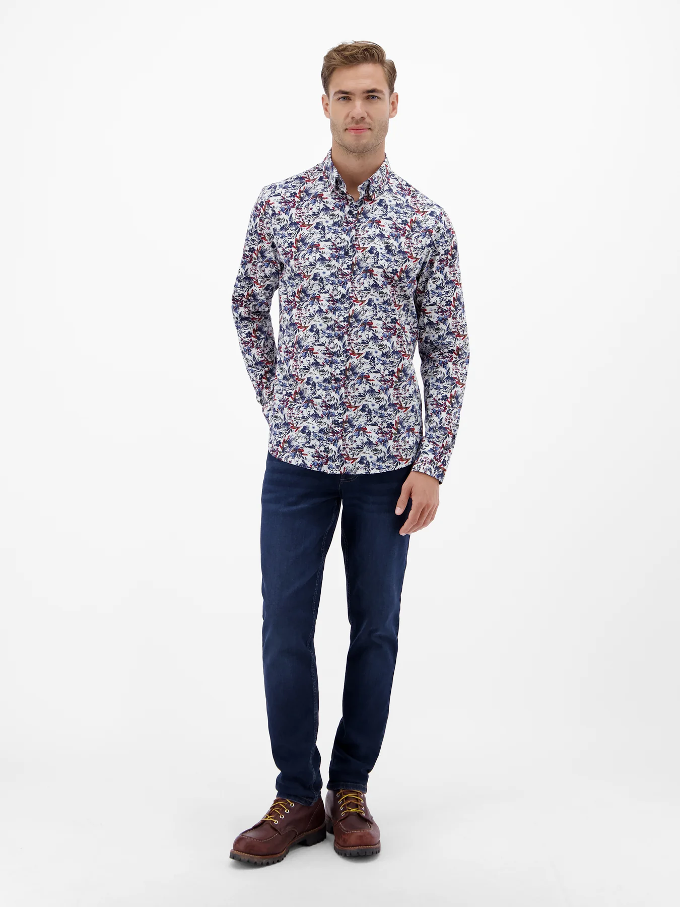 Dit stijlvolle LERROS overhemd in de kleur White combineert een modieuze, expressieve print met tijdloze elegantie. Het unieke grafische ontwerp geeft elke outfit een onderscheidende uitstraling – perfect voor kantoor, evenementen of stijlvolle dagelijkse momenten. De verborgen button-downkraag biedt veelzijdige stylingopties, zowel onder een blazer als los gedragen. Dankzij de hoogwaardige mix van 97% katoen en 3% elastaan geniet je van optimaal draagcomfort en een pasvorm die mooi in vorm blijft.