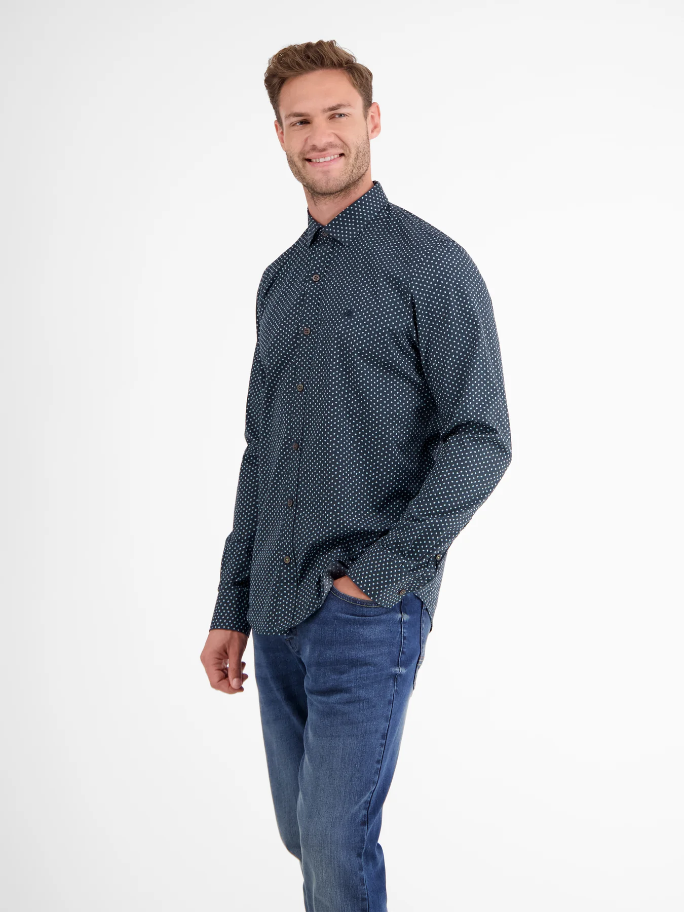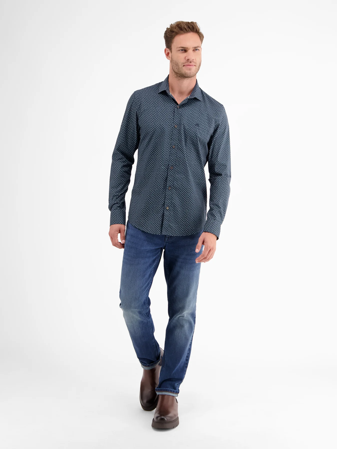 Lerros overhemd met lange mouwen, een kraag en een allover print. Dit Lerros overhemd is gemaakt van katoen met comfortabele stretch.