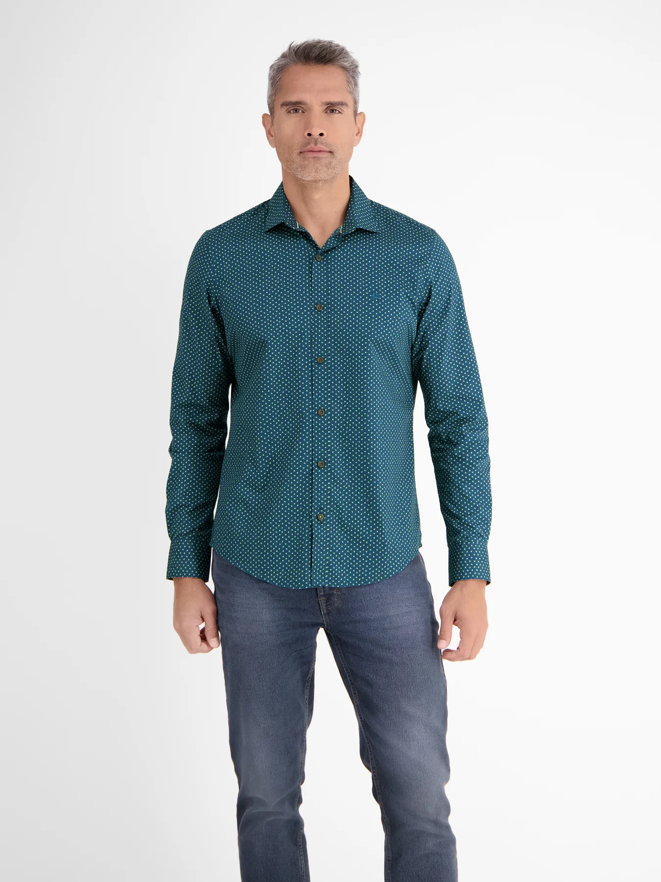 Lerros overhemd met lange mouwen, een kraag en een allover print. Dit Lerros overhemd is gemaakt van katoen met comfortabele stretch.