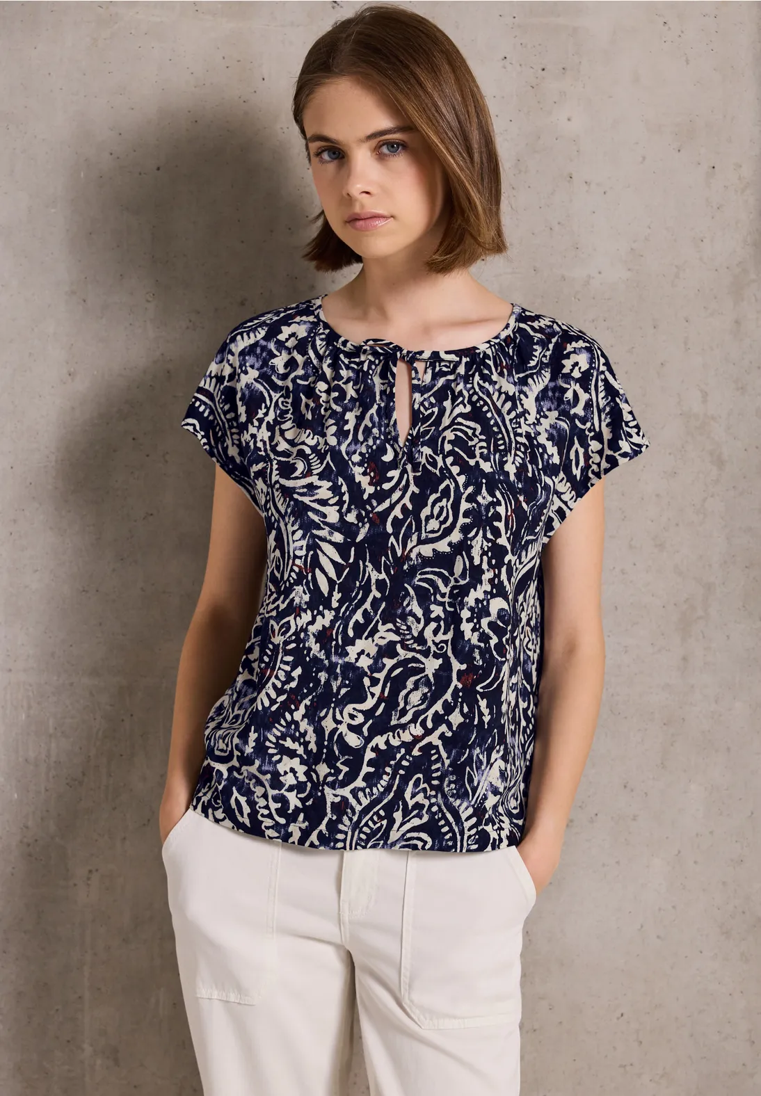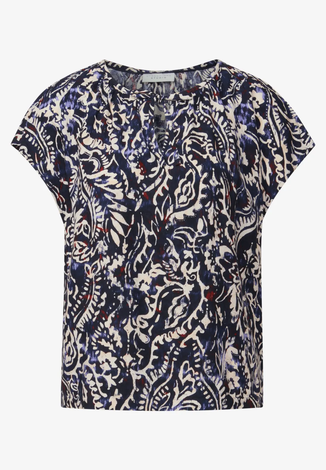Street One Studio met korte mouwen, een allover print en een ronde hals met split en koordje. Deze Street One Studio blouse is gemaakt van zachte viscose.