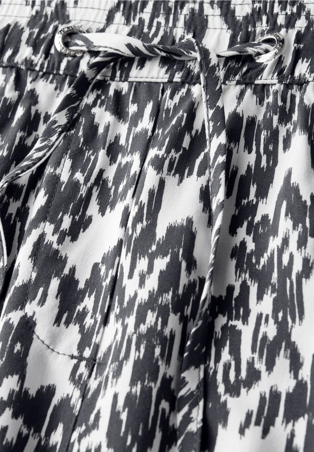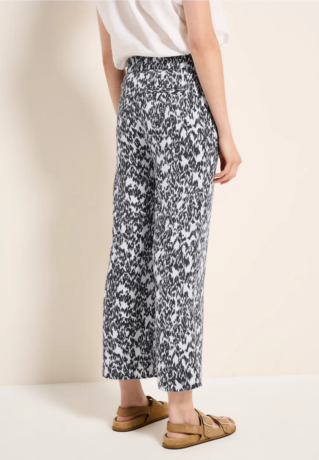 Cecil Neele. Cecil broek met een loose fit, hoge taille en wijde broekspijpen in een zomerse lengte. Deze Cecil broek heeft een allover print, een elastische tailleband, koordsluiting en steekzakken.