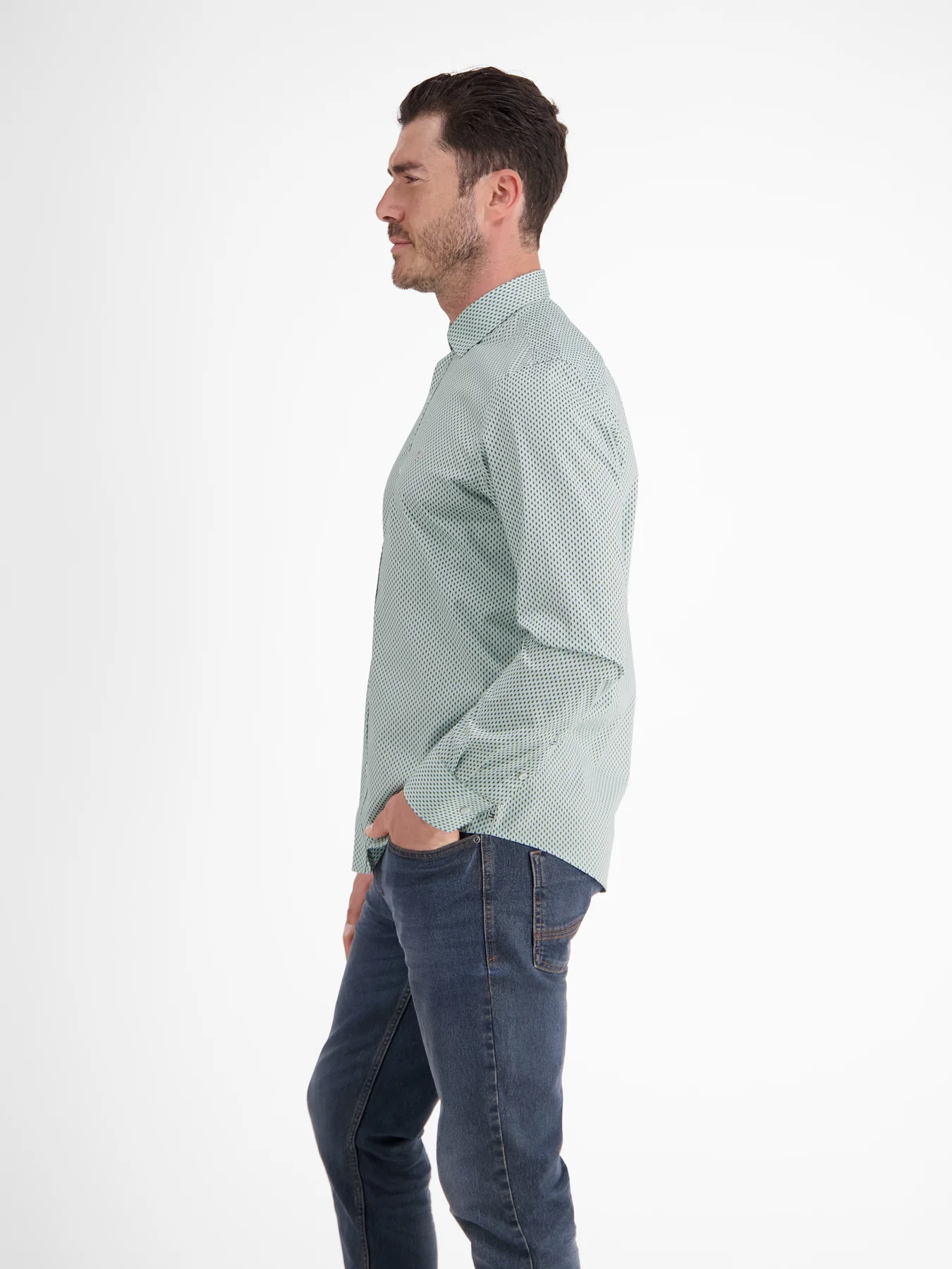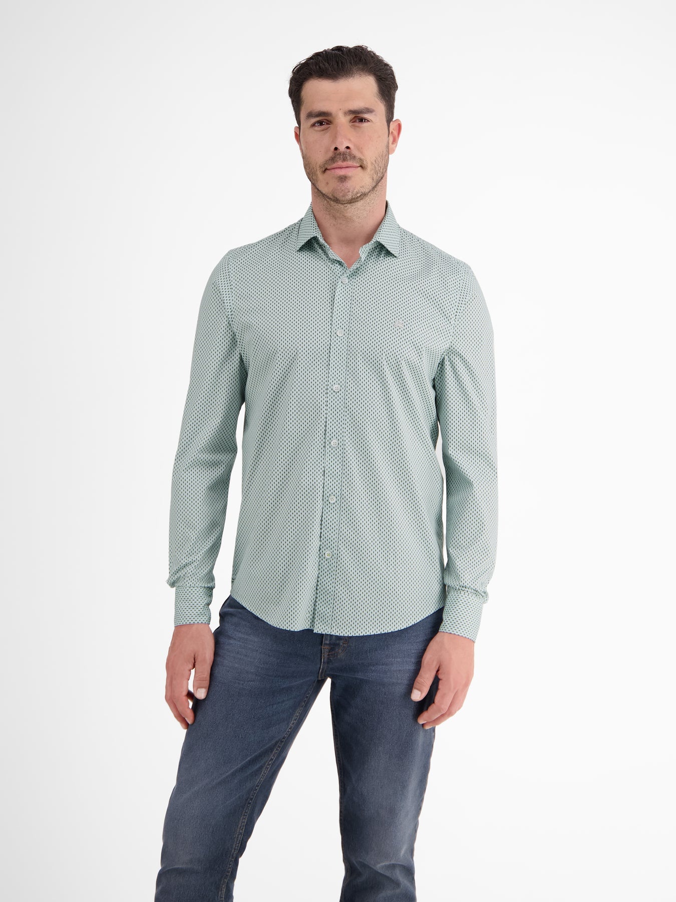 Lerros overhemd met lange mouwen, een kraag en een geometrische allover print. Dit Lerros overhemd heeft verstelbare manchetten en is gemaakt van katoen met comfortabele stretch.