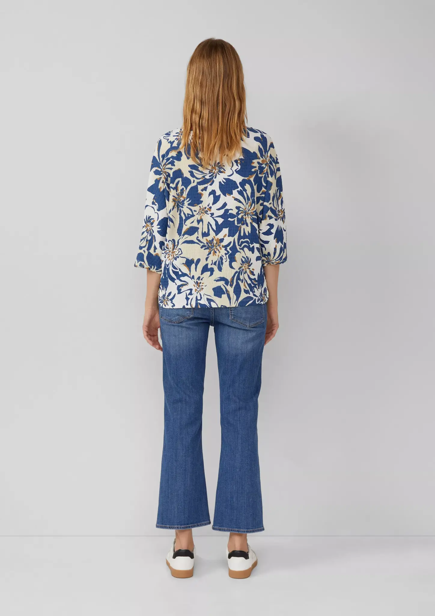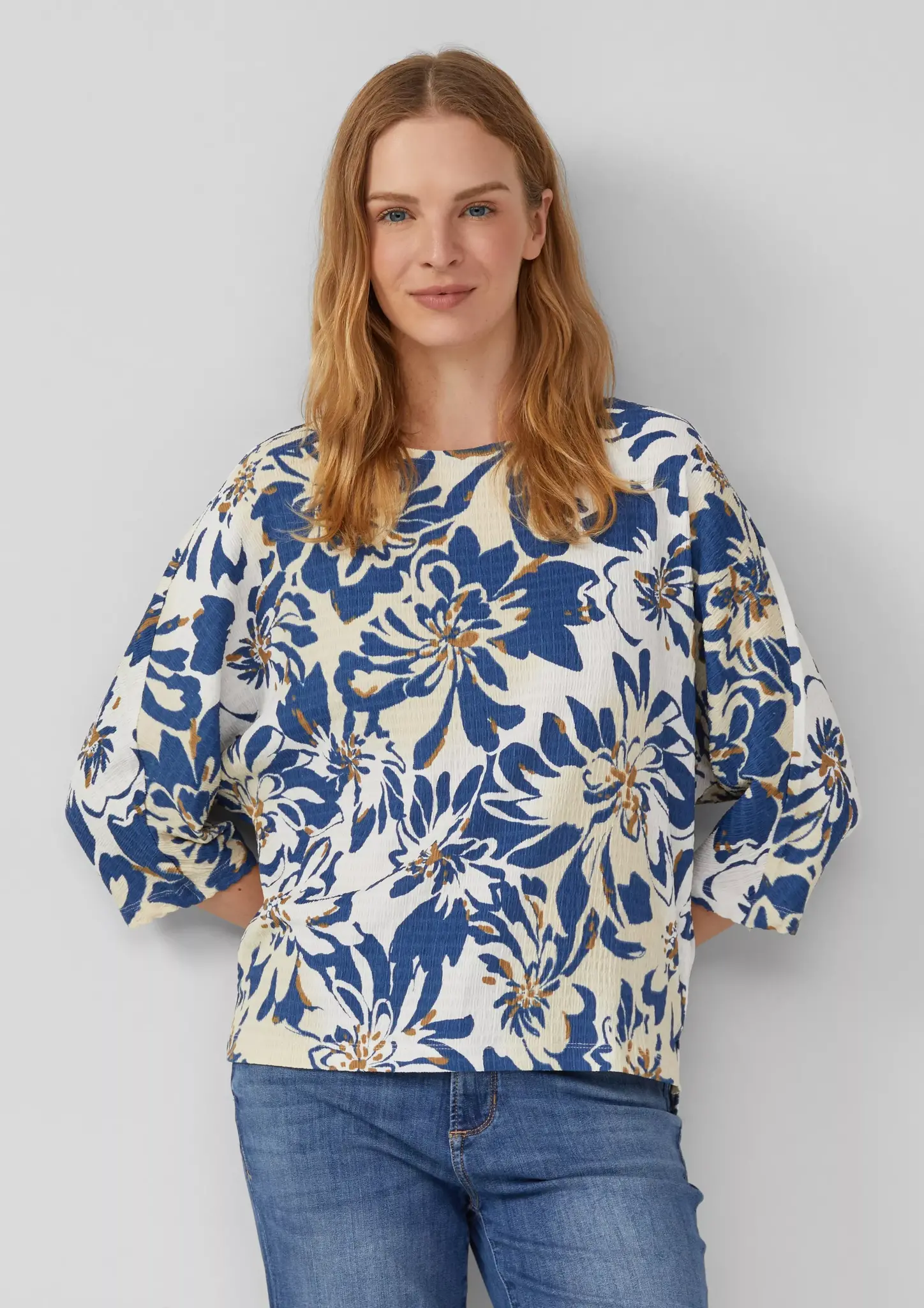 S. Oliver shirt met 3/4-vleermuis mouwen, een ronde hals en een allover print. Dit S. Oliver shirt heeft een relaxed fit en zijsplitten in de zoom.