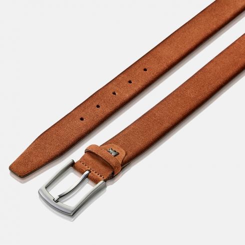 Riem Kyle. Lerros riem met een discreet reliëf en een geborstelde gesp. Gemaakt van koeienhuid en synthetische vezels.