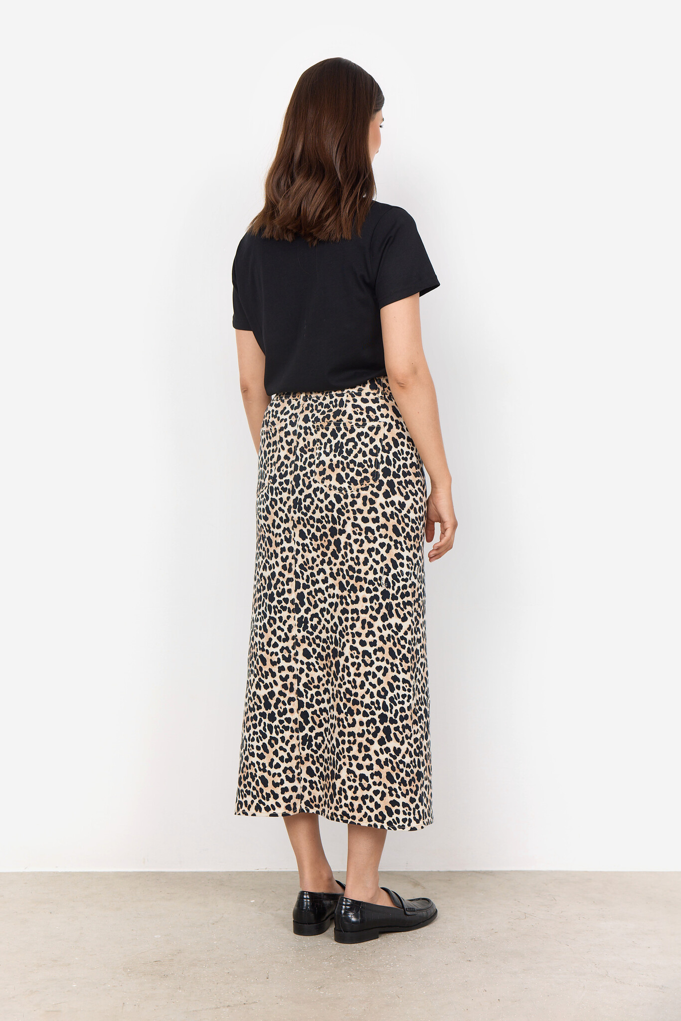 Soyaconcept SC Owena 1. Soyaconcept rok met een luipaardprint. Deze Soyaconcept rok heeft een split aan de voorkant en is gemaakt van biologisch katoen en comfortabele stretch.