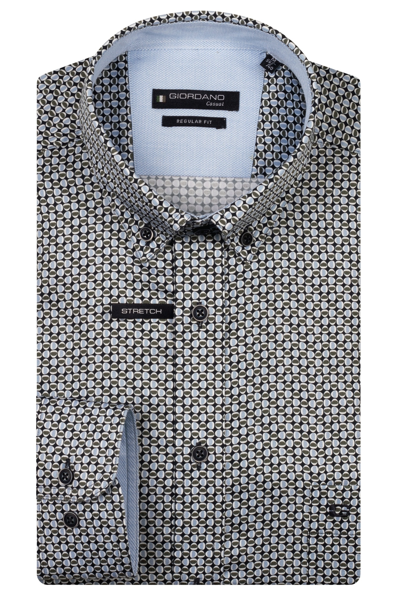 Giordano overhemd met lange mouwen, een button-down kraag en een regular fit. Dit Giordano overhemd is voorzien van een borstzak en gemaakt van een katoen-stretch kwaliteit.