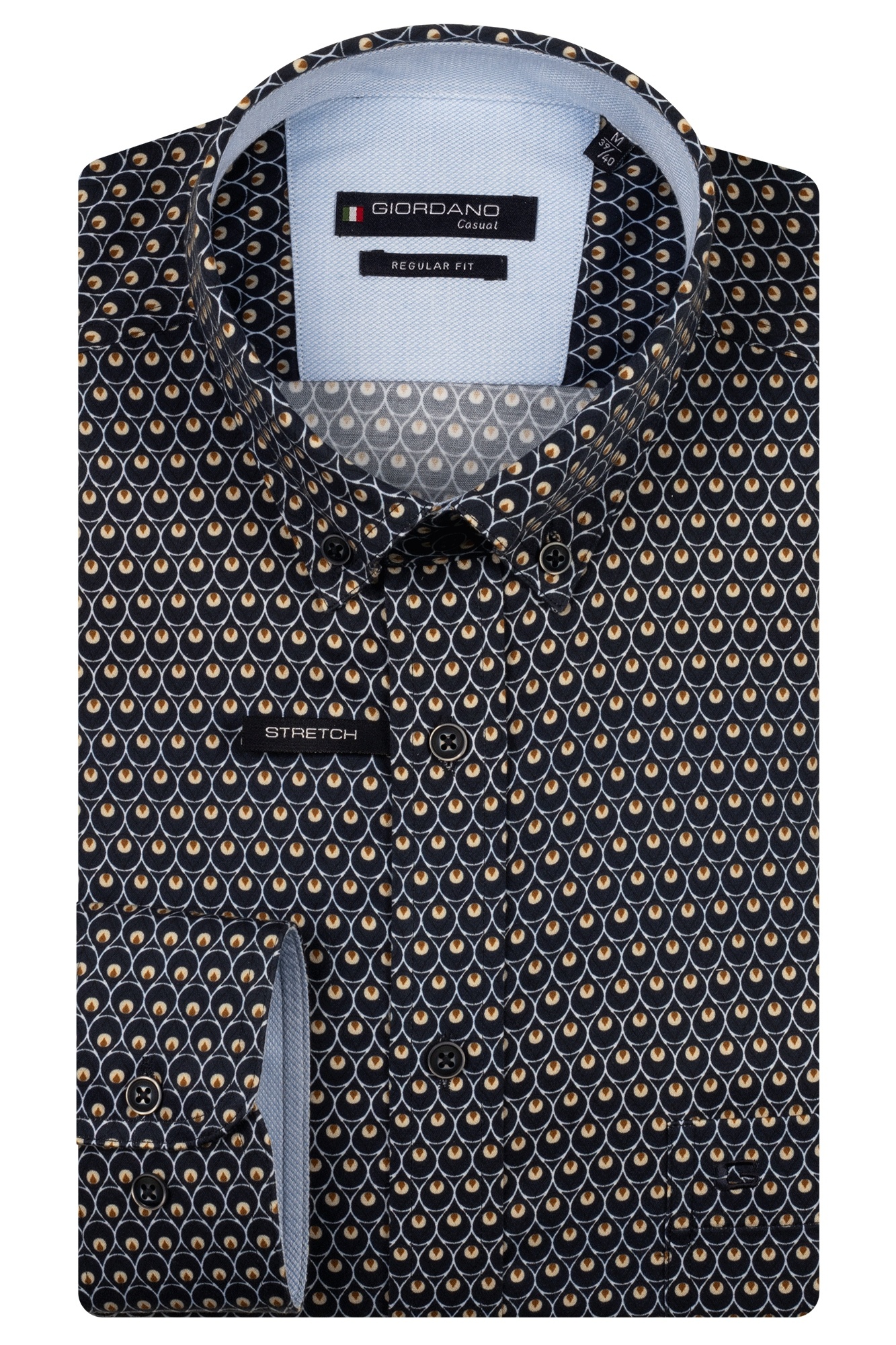 Giordano overhemd met lange mouwen, een button-down kraag en een regular fit. Dit Giordano overhemd is voorzien van een borstzak en gemaakt van een katoen-stretch kwaliteit.