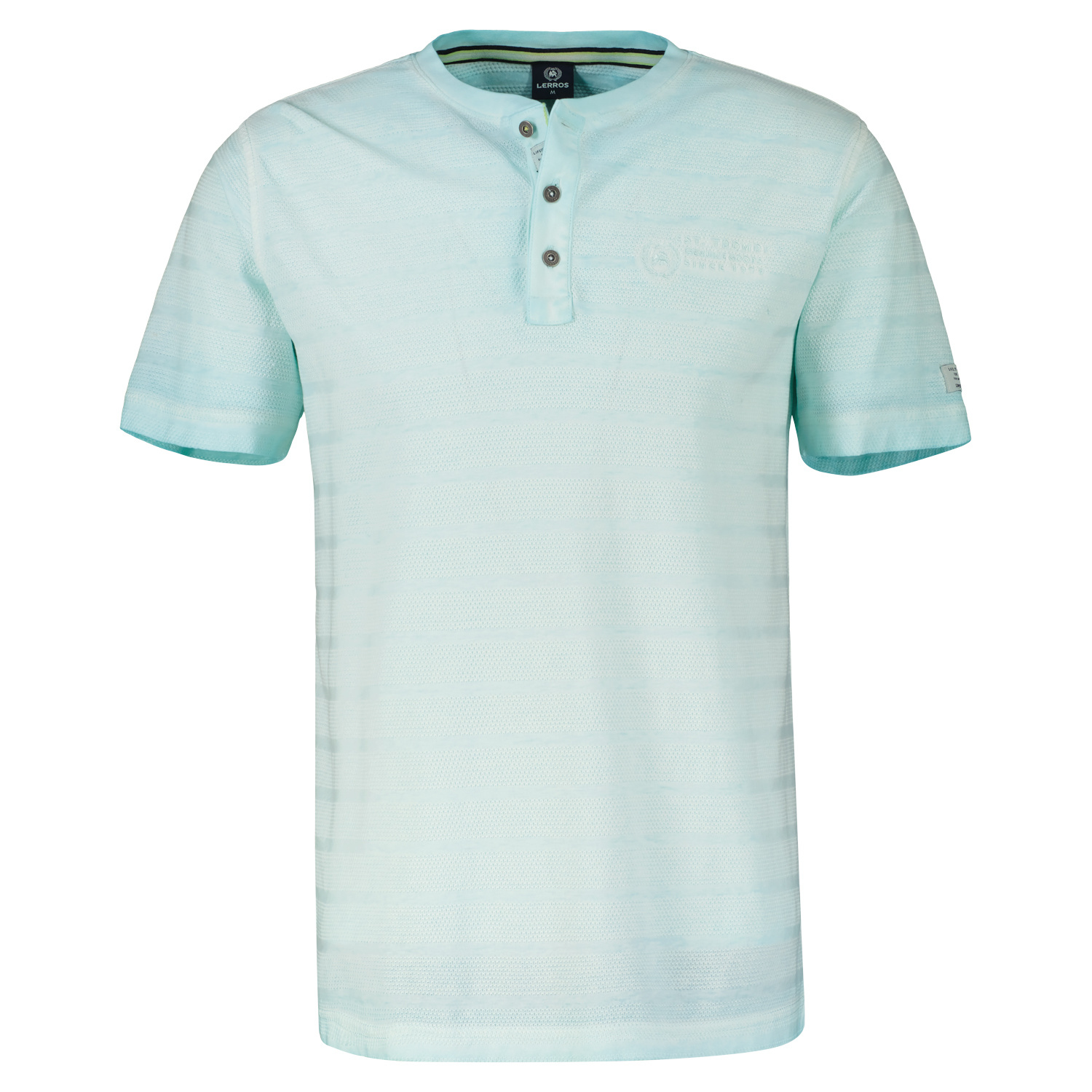 Lerros serafino shirt met korte mouwen, een ronde hals met knoopsluiting en geweven structuur strepen. Dit Lerros T-shirt heeft een logo-stitching op borsthoogte. Gemaakt van zuiver katoen.