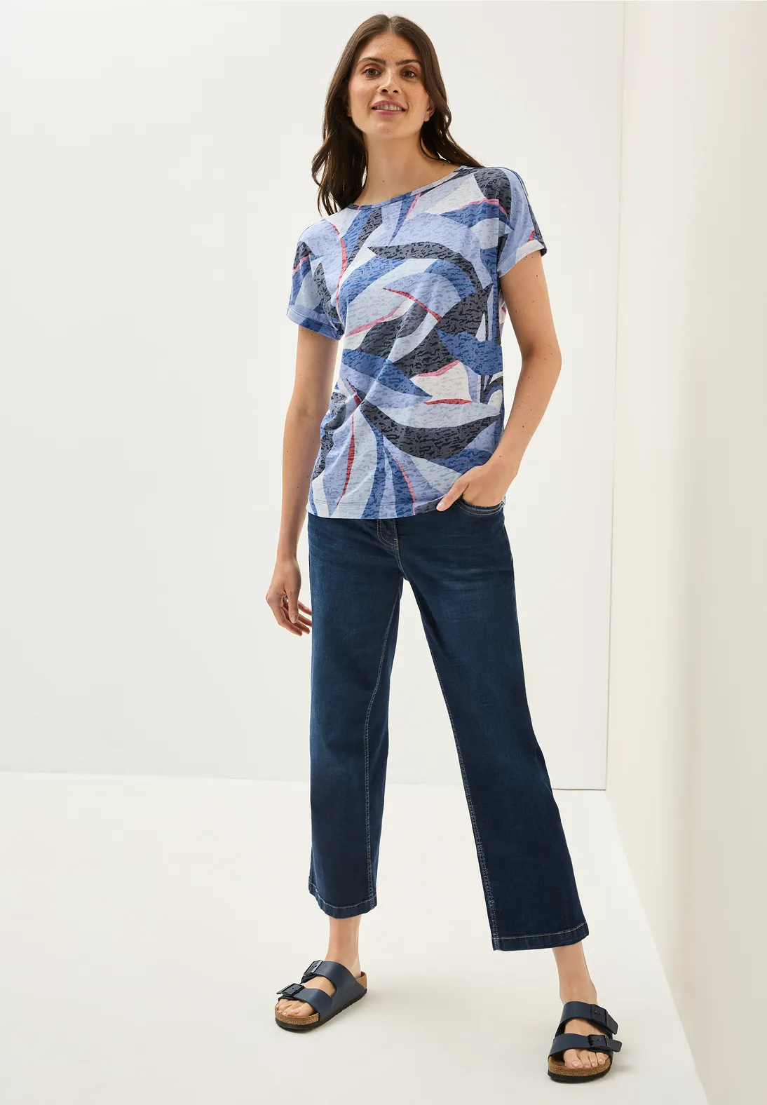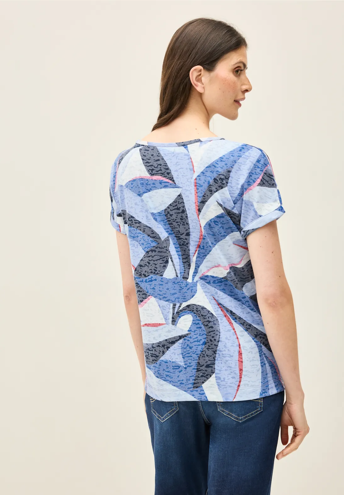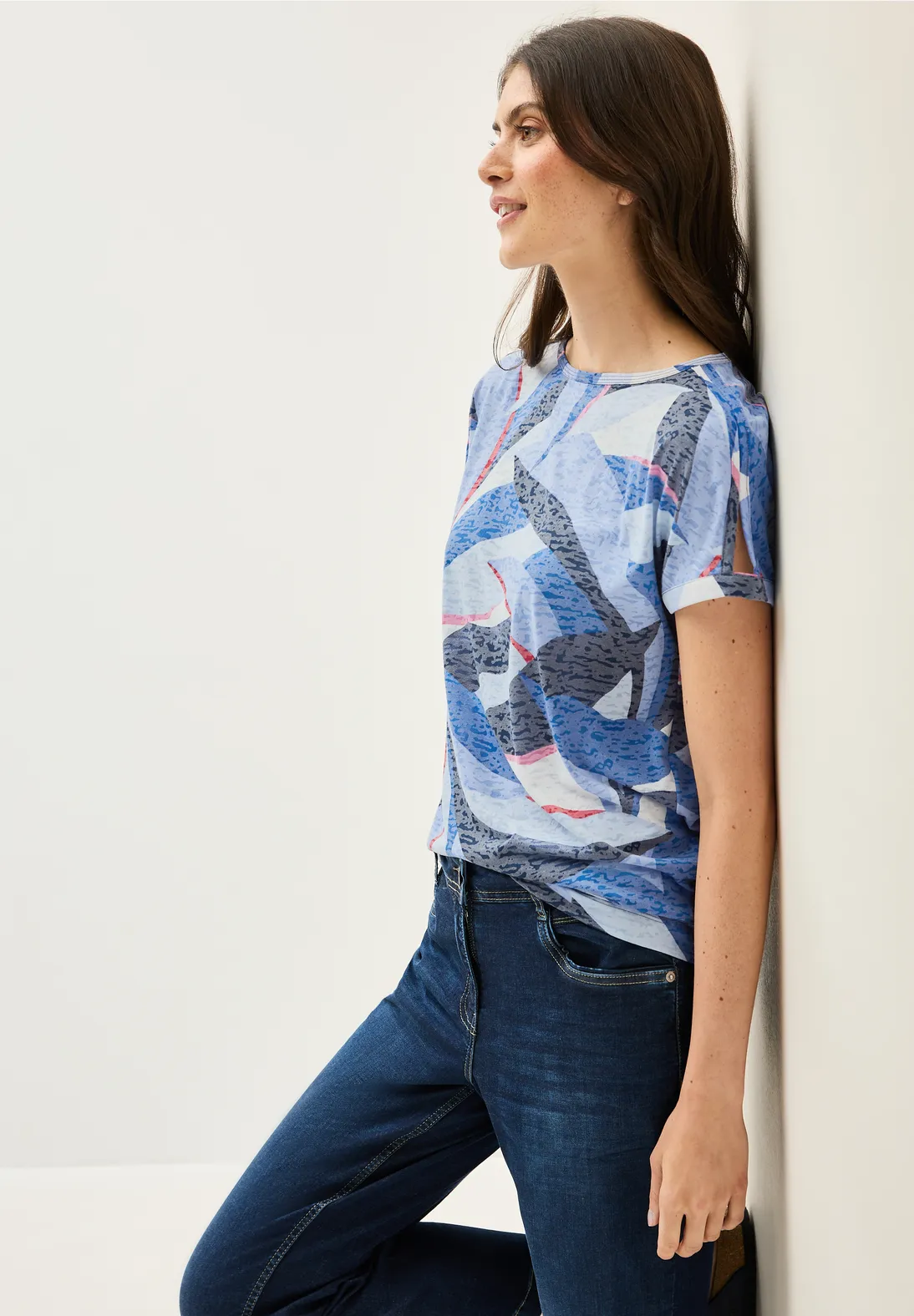 Cecil shirt met korte mouwen, een boothals en een grafisch patroon met burn-out look. Dit Cecil shirt is gemaakt van een lichtgewicht jersey stof.
