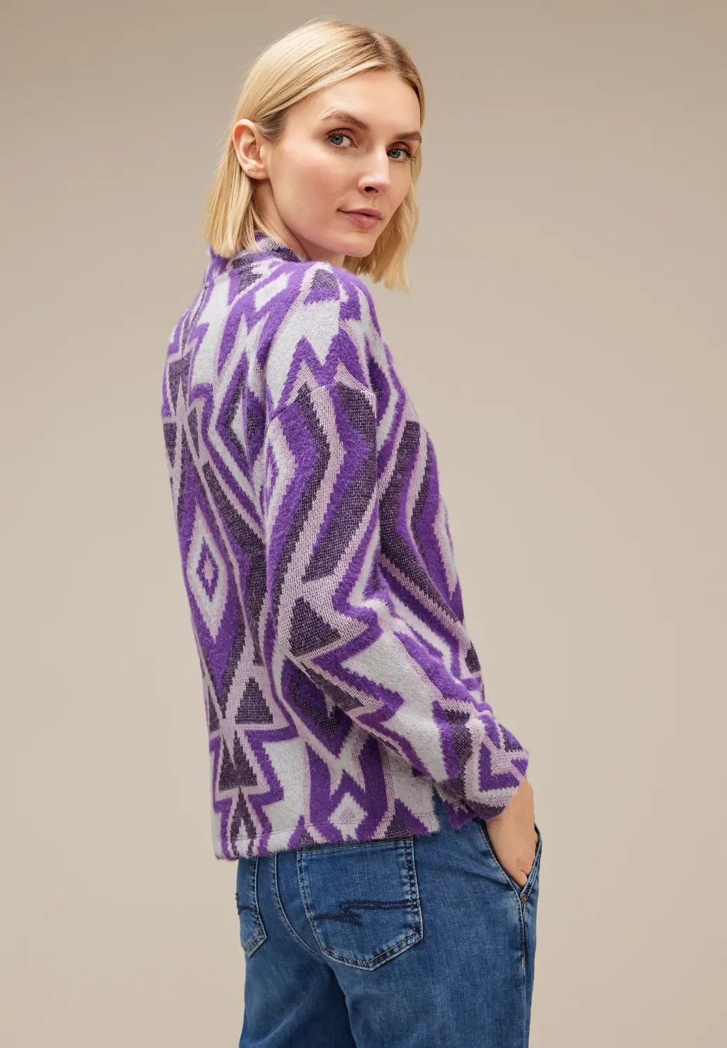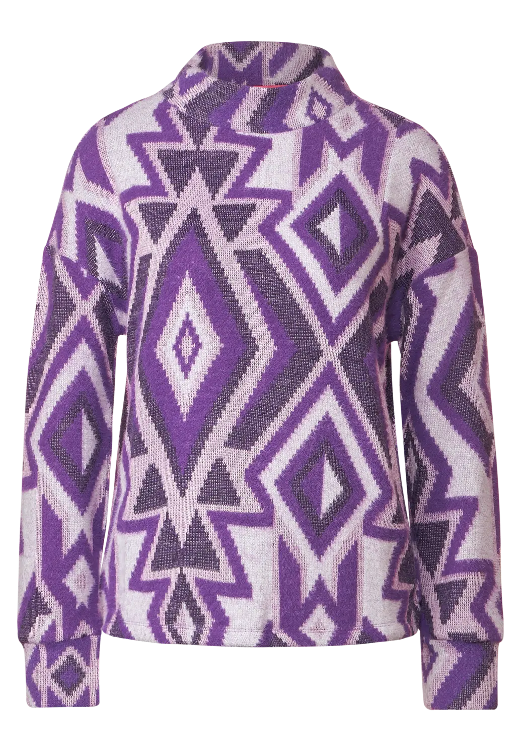Street One shirt met lange mouwen, een opstaande kraag en een meerkleurig patroon.