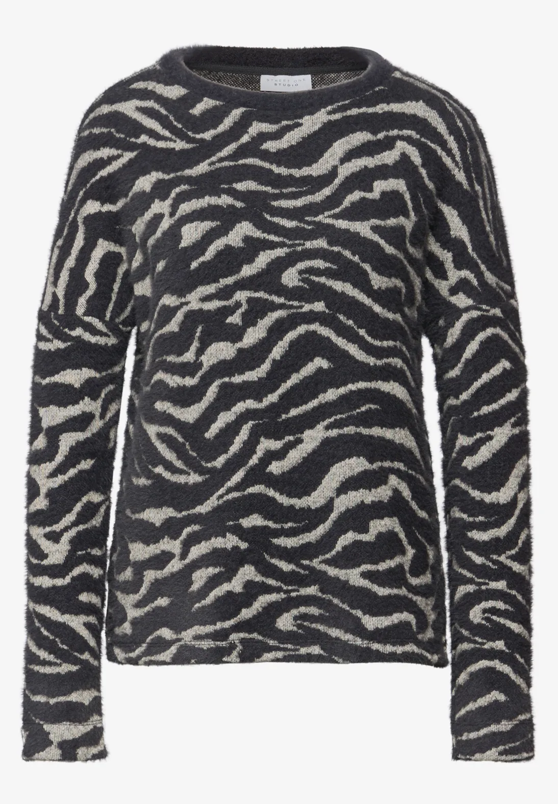 Street One Studio Damesshirt – Black | Zacht Shirt met Grafisch Patroon en Boothals