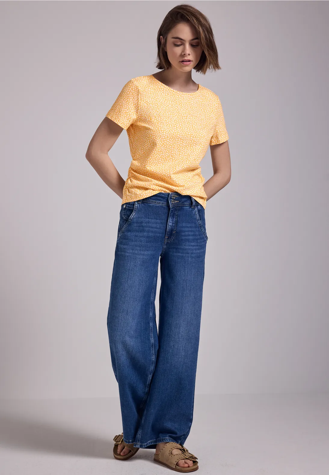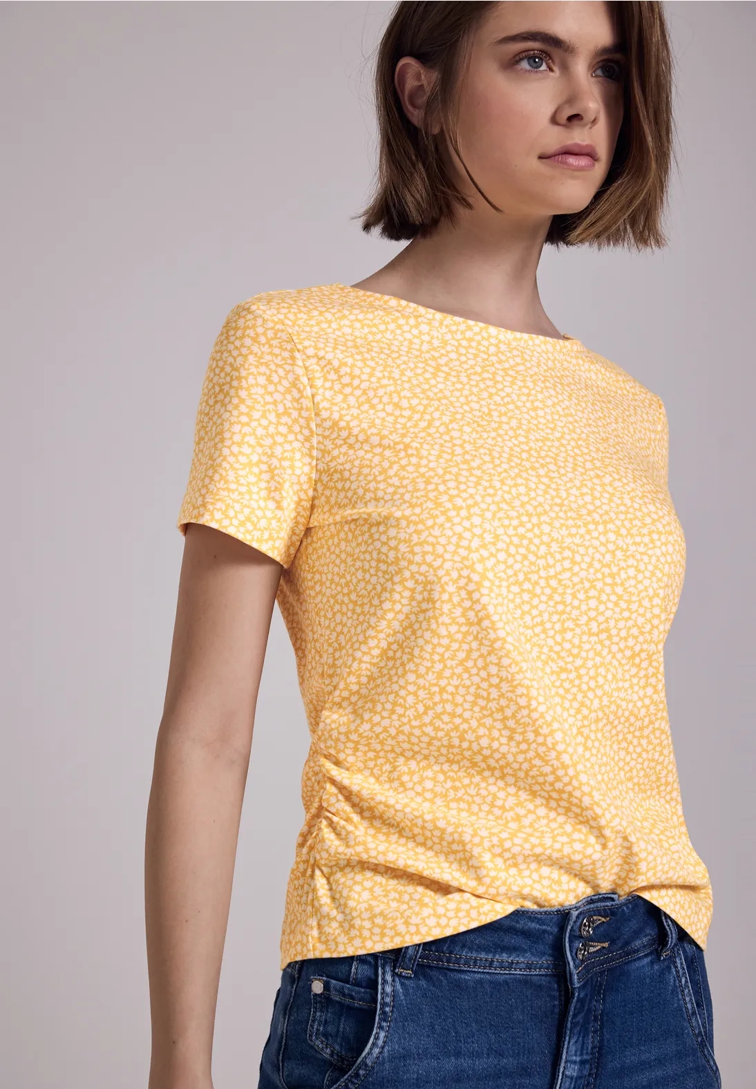 Street One Studio shirt met korte mouwen, een ronde hals en een uitgesneden rug. Dit Street One Studio shirt heeft een allover print en plooien aan de zijkant. De allover print maakt het geheel compleet. Gemaakt van een katoenmix met comfortabele stretch.