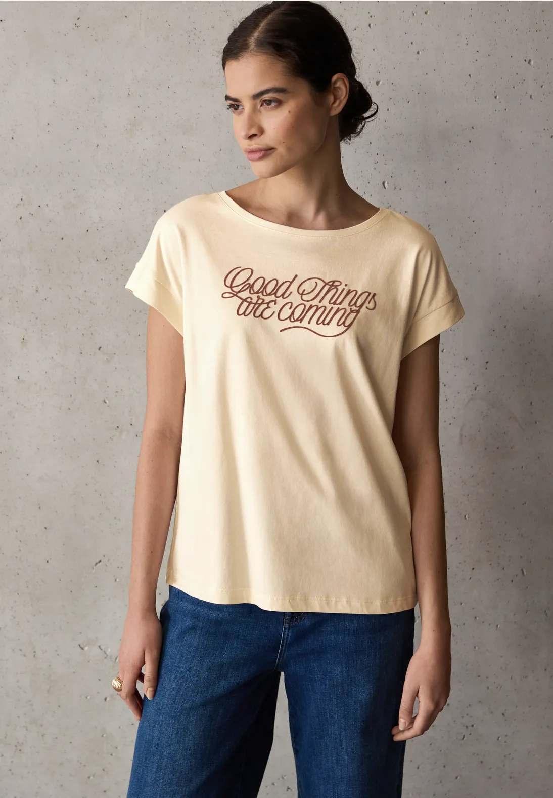Denim/JeansRokken/JurkenVesten/TruienJassen/MantelsBlazersBeschrijvingShirt met Tekst - Mellow Vanilla