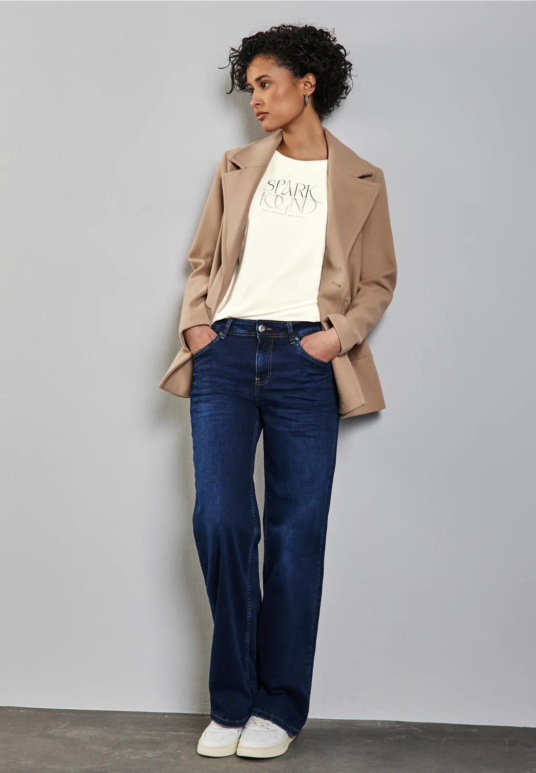 Street One shirt met korte mouwen, een ronde hals en een tekstopdruk op de voorkant. Dit Street One shirt is gemaakt van een viscosemix met comfortabele stretch.