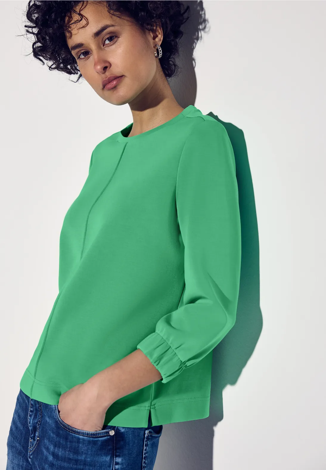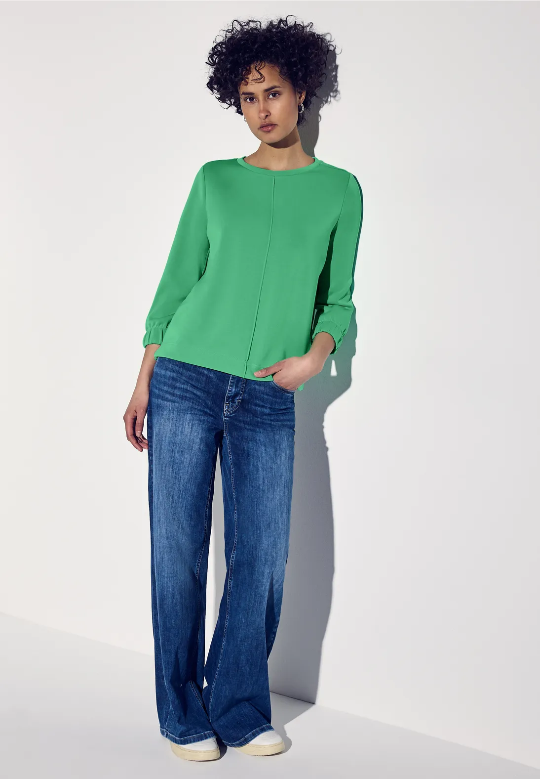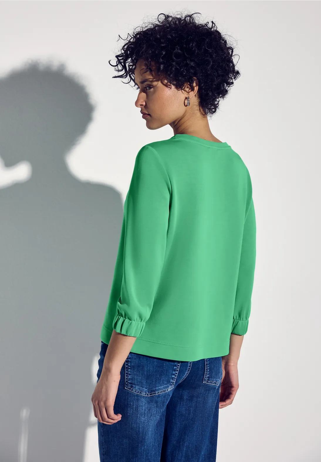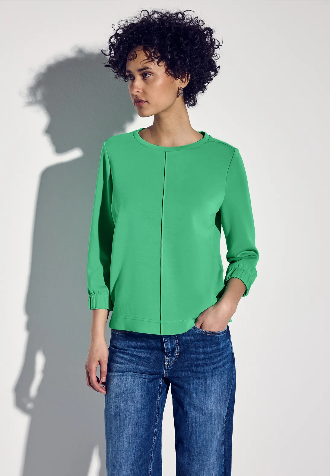 Street One shirt met 3/4-mouwen, een ronde hals en een zijden look. Dit Street One shirt heeft zijsplitten en is gemaakt van een modalmix met stretch.