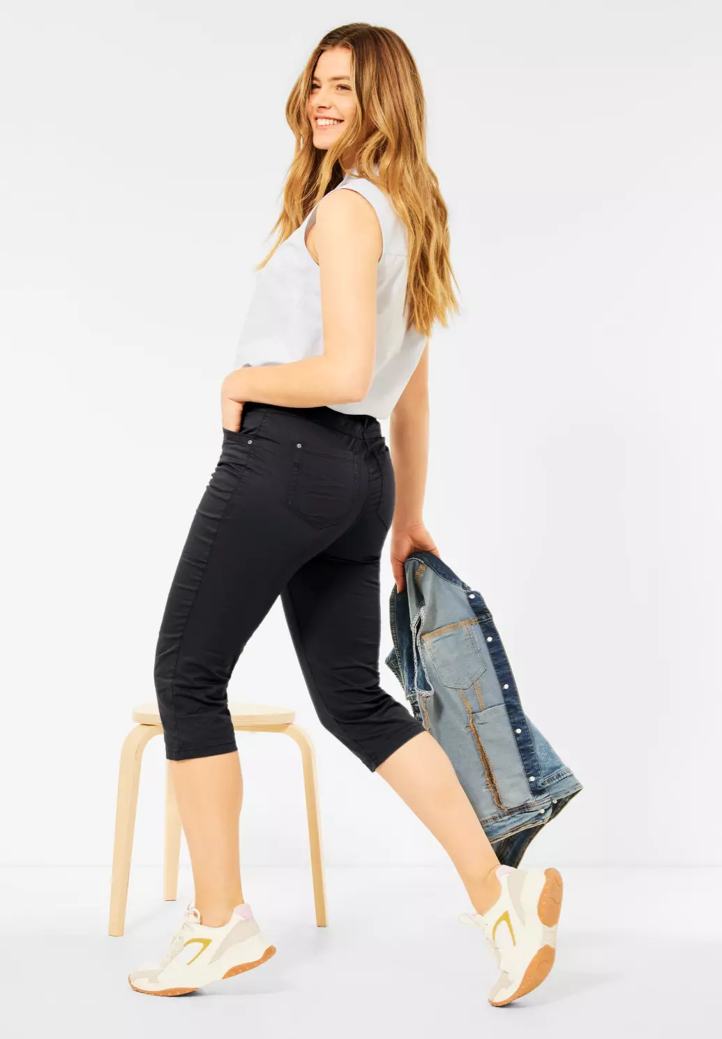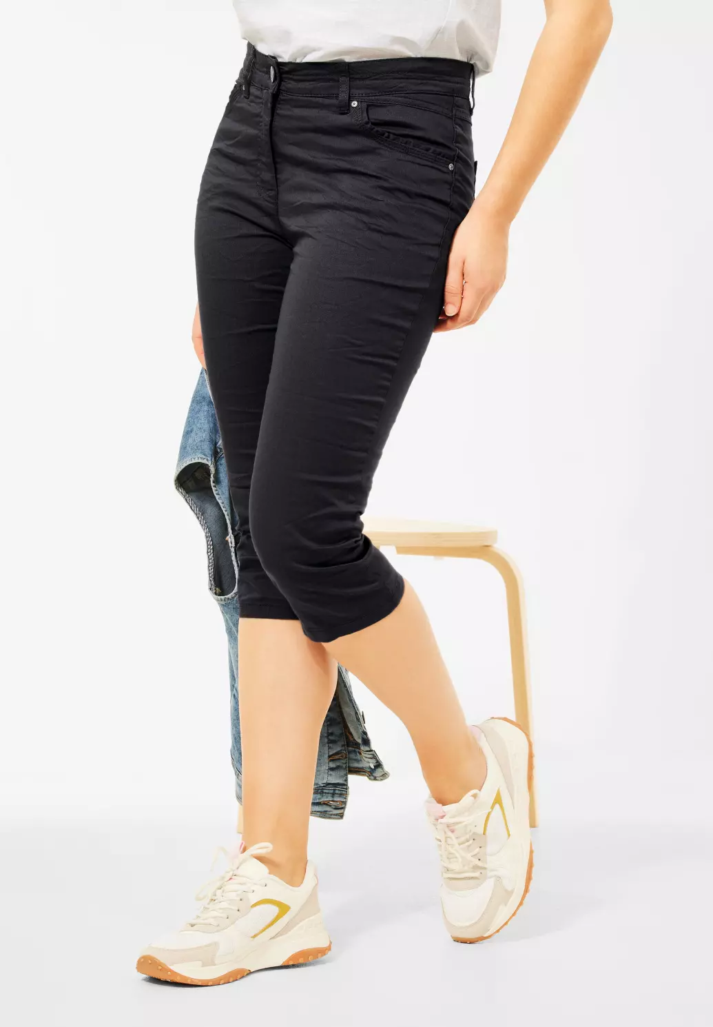 Cecil Toronto. Cecil broek met een slim fit, hoge taille en slanke broekspijpen in een zomerse lengte. Deze Cecil broek wordt gesloten met een ritssluiting en knoop.