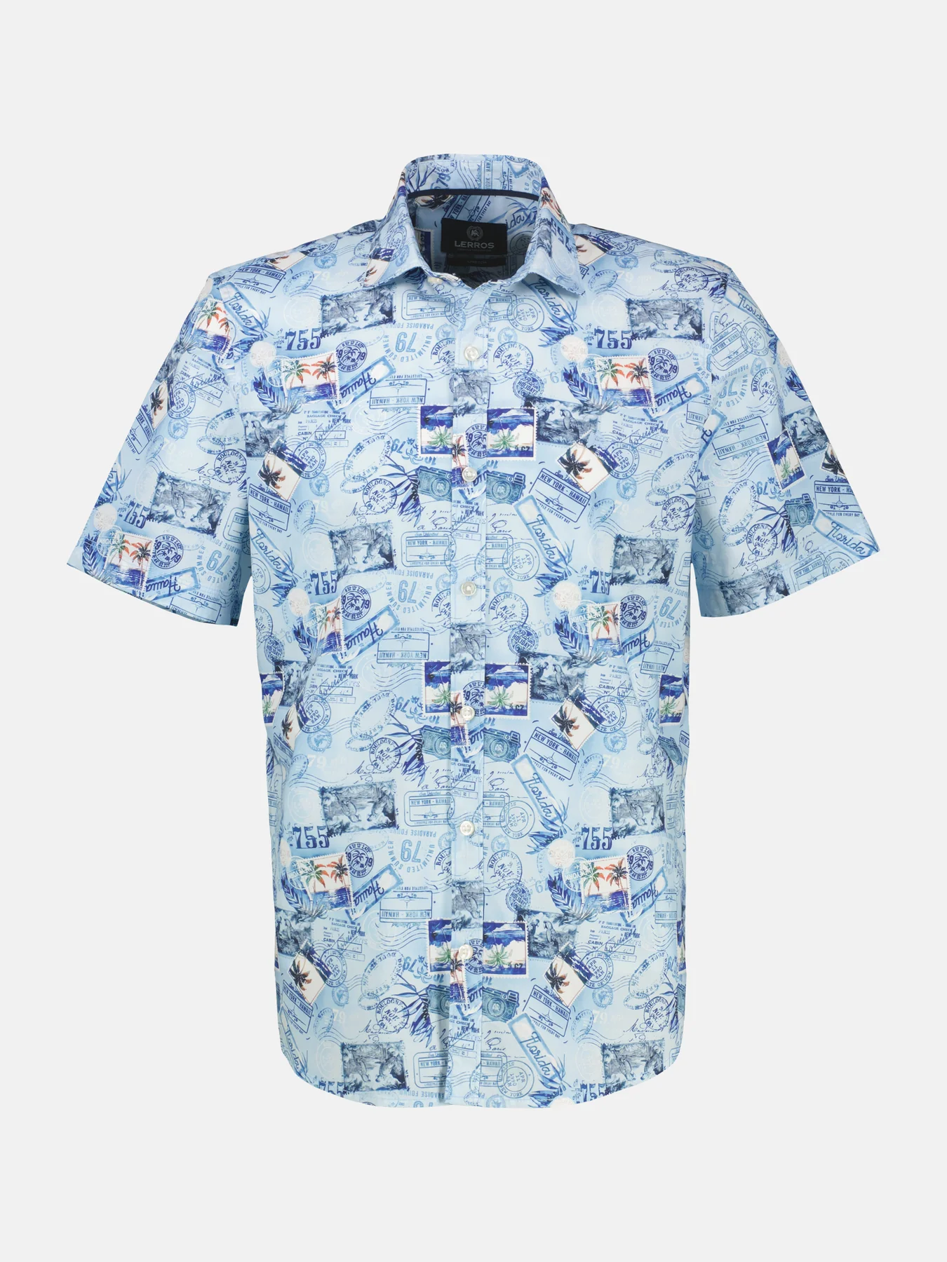 Lerros overhemd met korte mouwen, een kraag en een allover print.