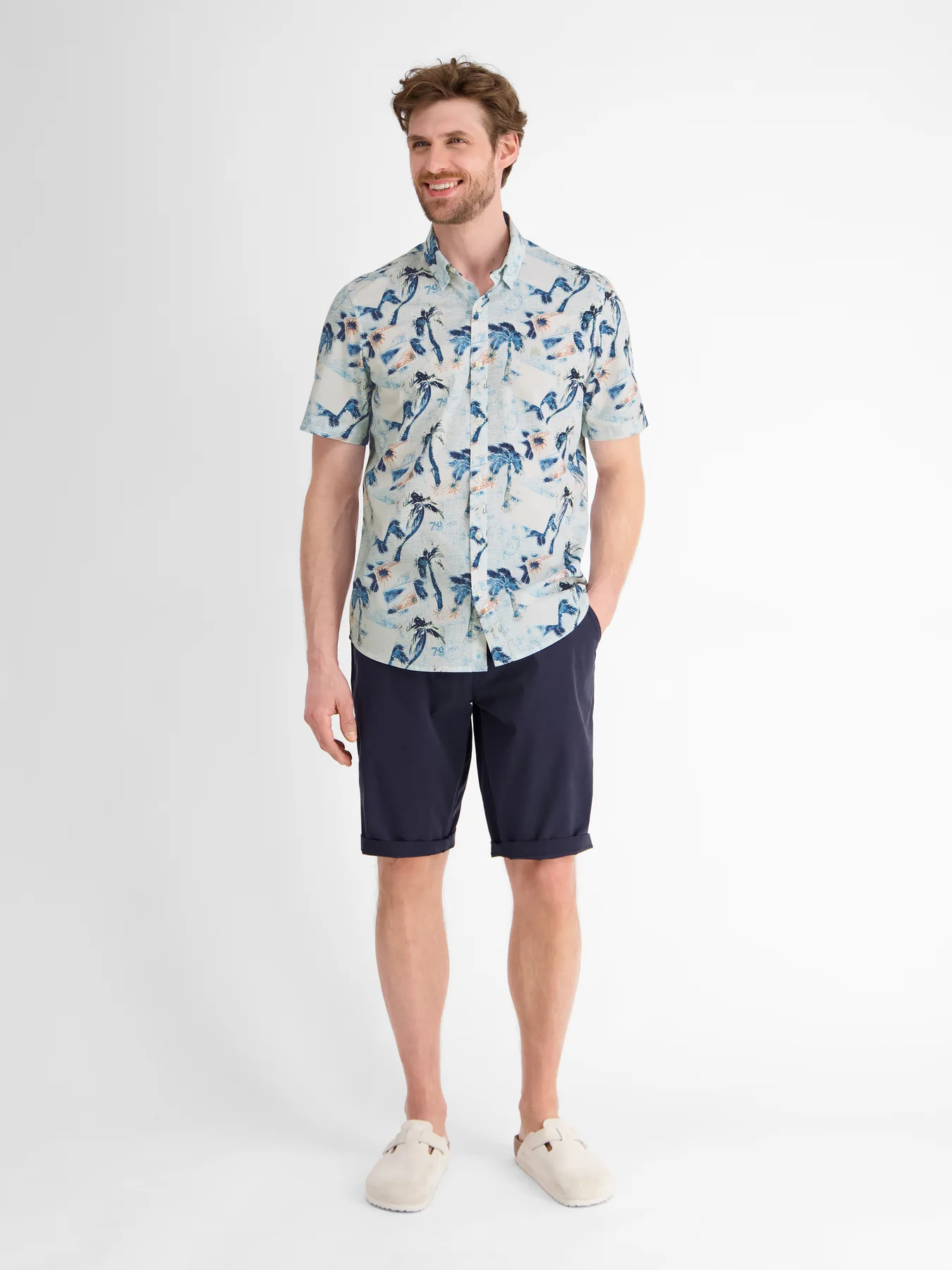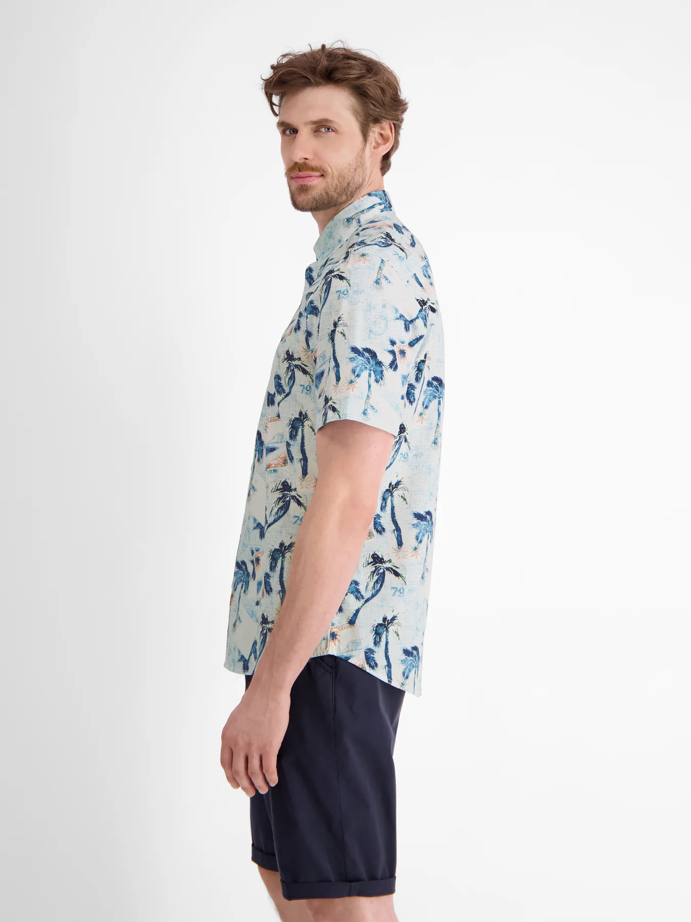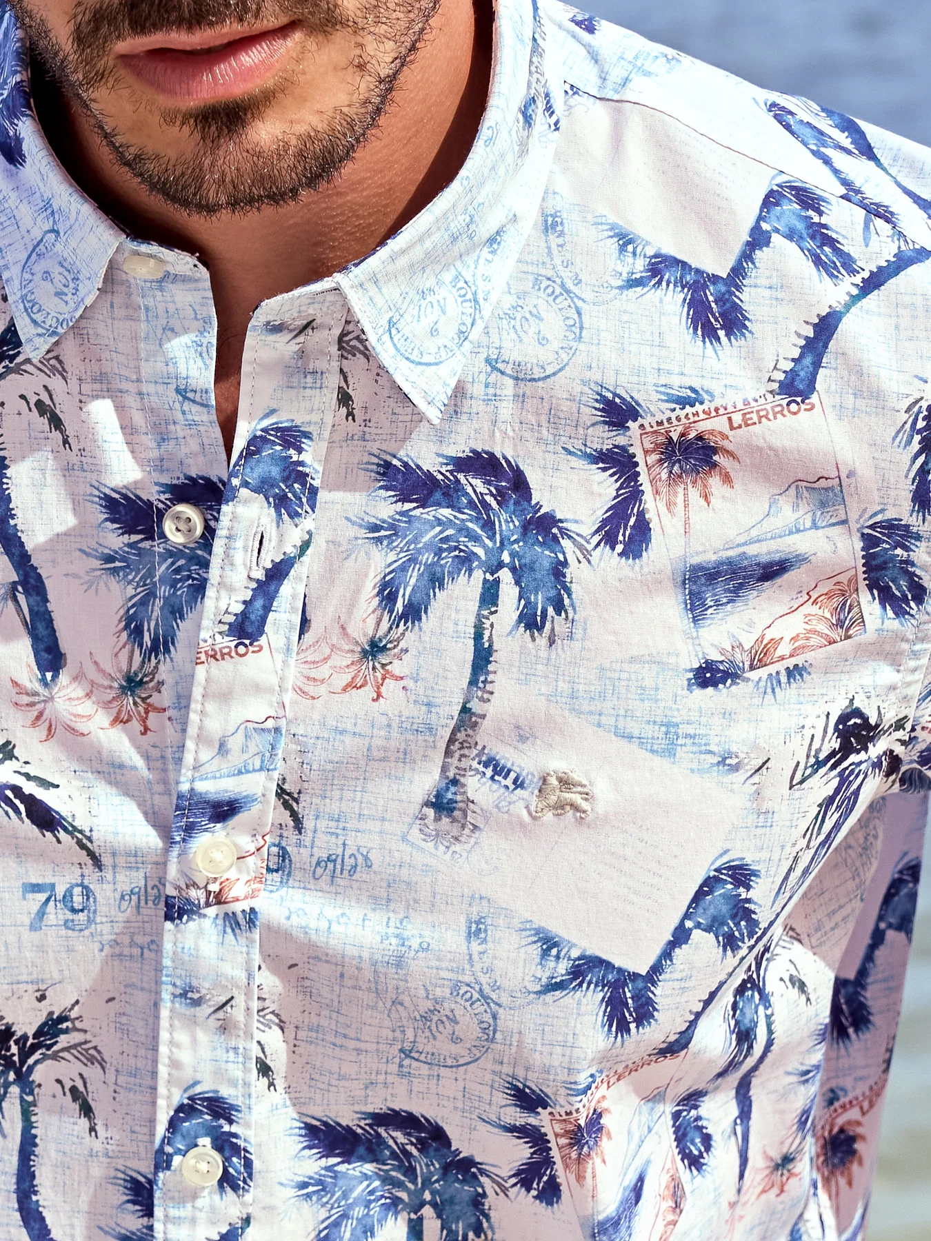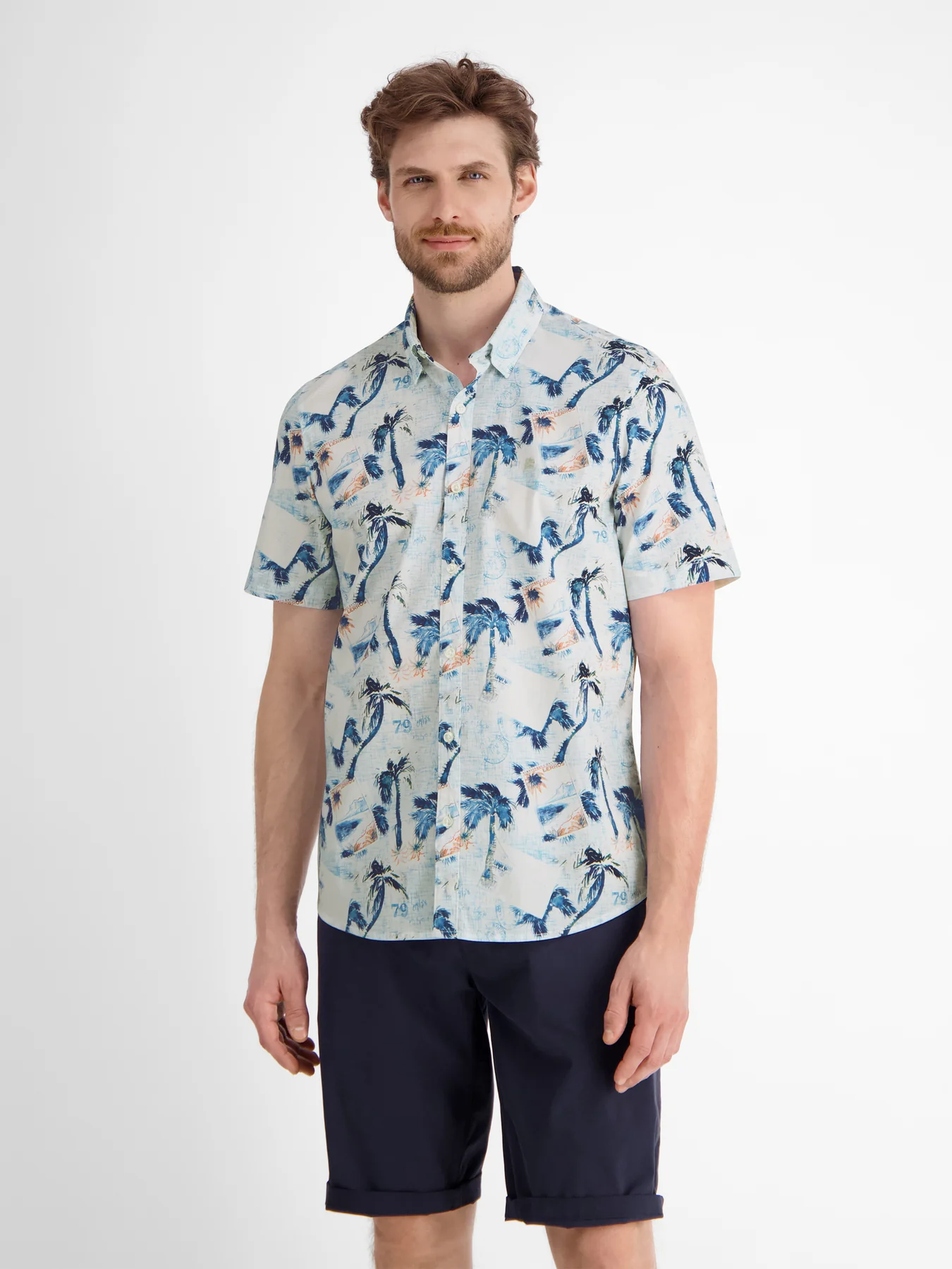 Lerros overhemd met korte mouwen, een kraag en een allover print.
