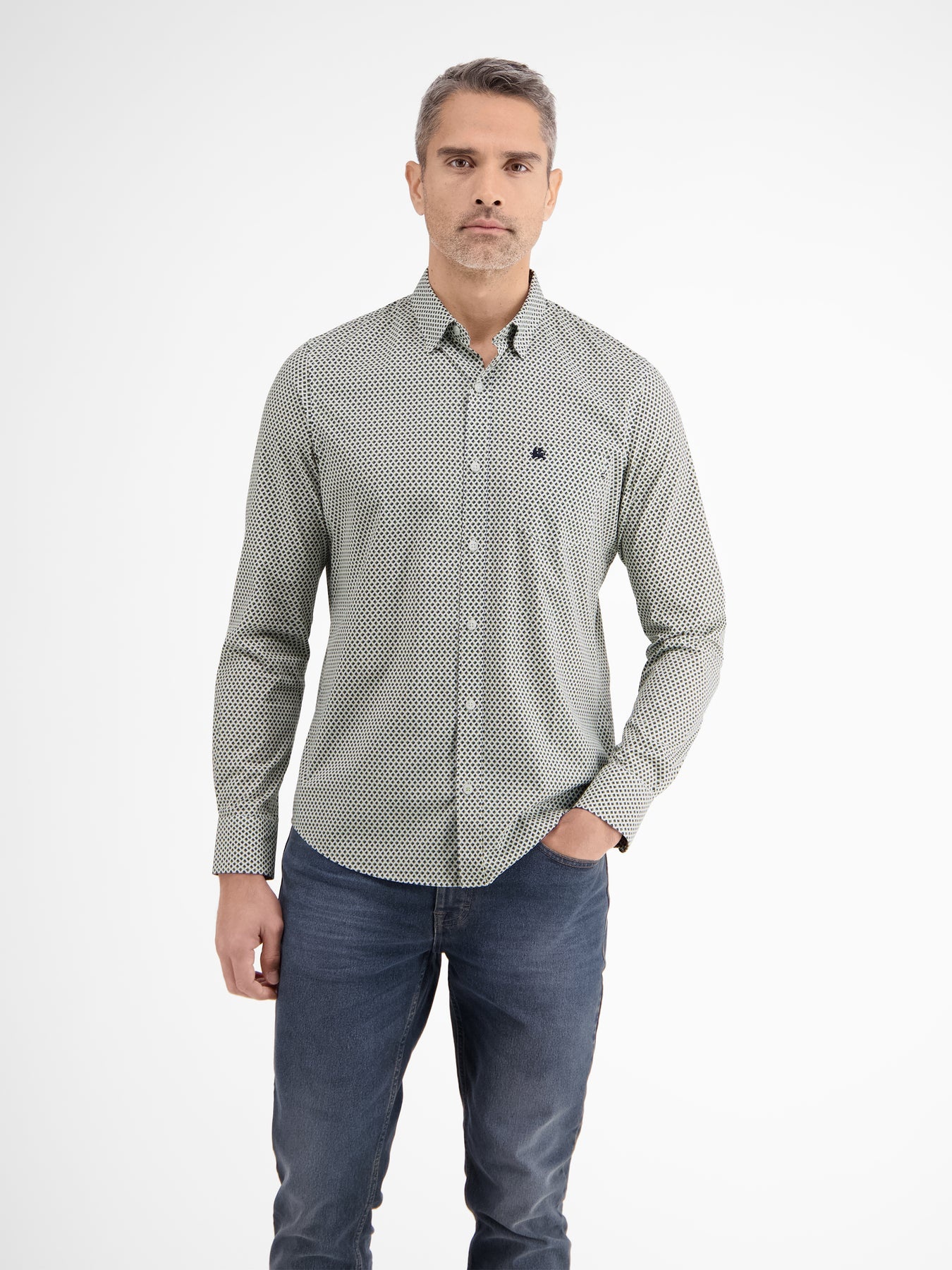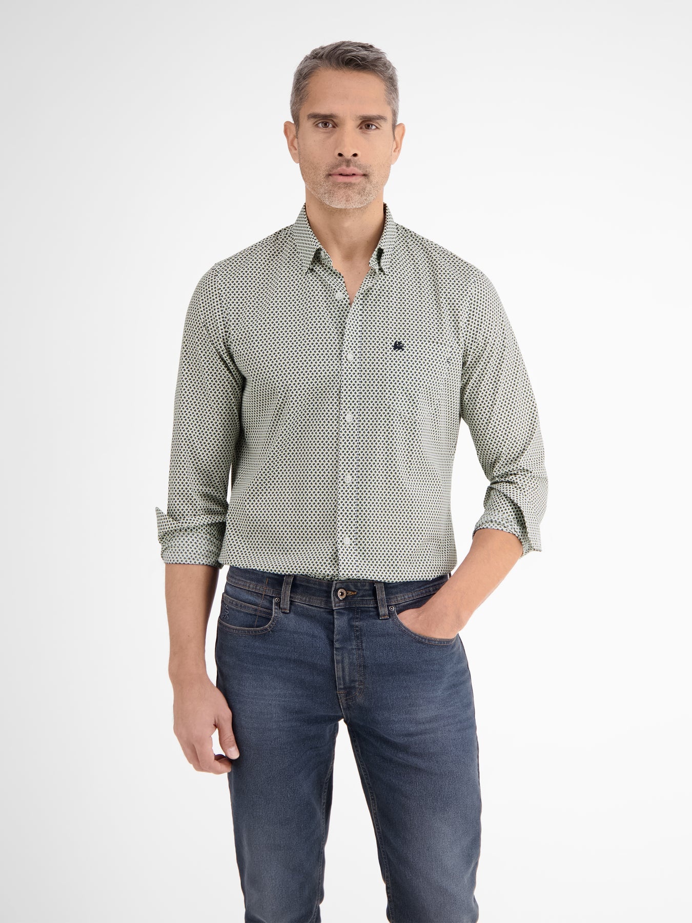 Lerros overhemd met lange mouwen, een verborgen button-down kraag en een minimalistische allover print. Dit Lerros overhemd heeft verstelbare manchetten en is gemaakt van katoen met comfortabele stretch.