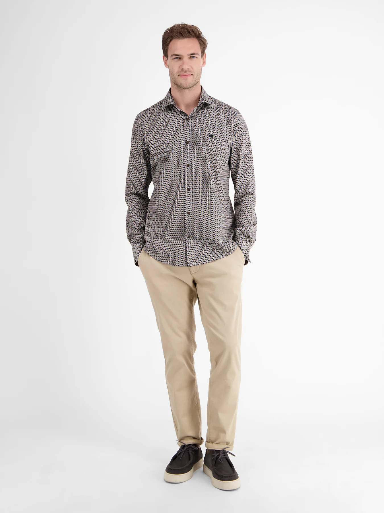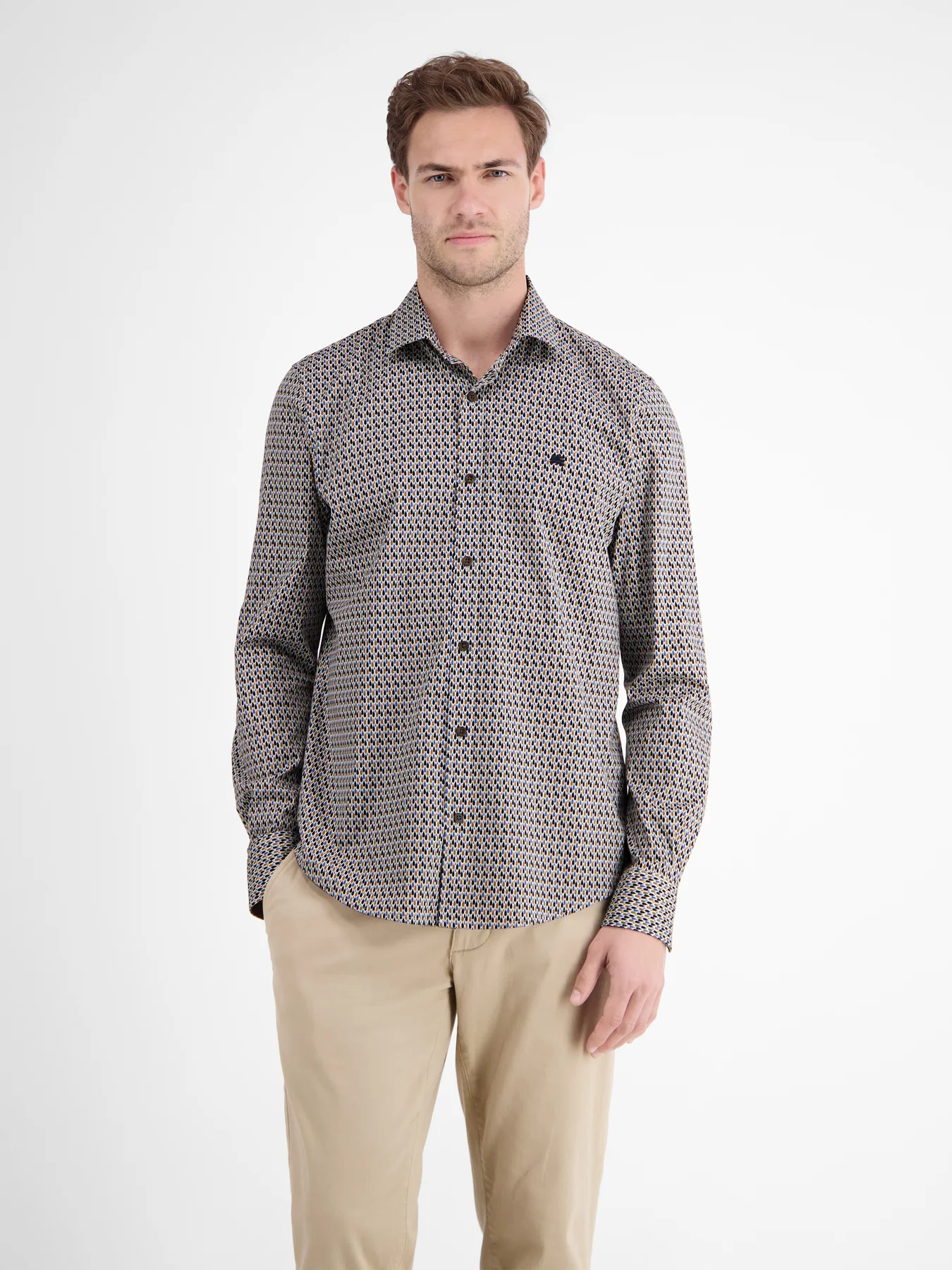 Lerros overhemd met lange mouwen, een kraag en een allover print. Dit Lerros overhemd heeft verstelbare manchetten en is gemaakt van katoen met comfortabele stretch.