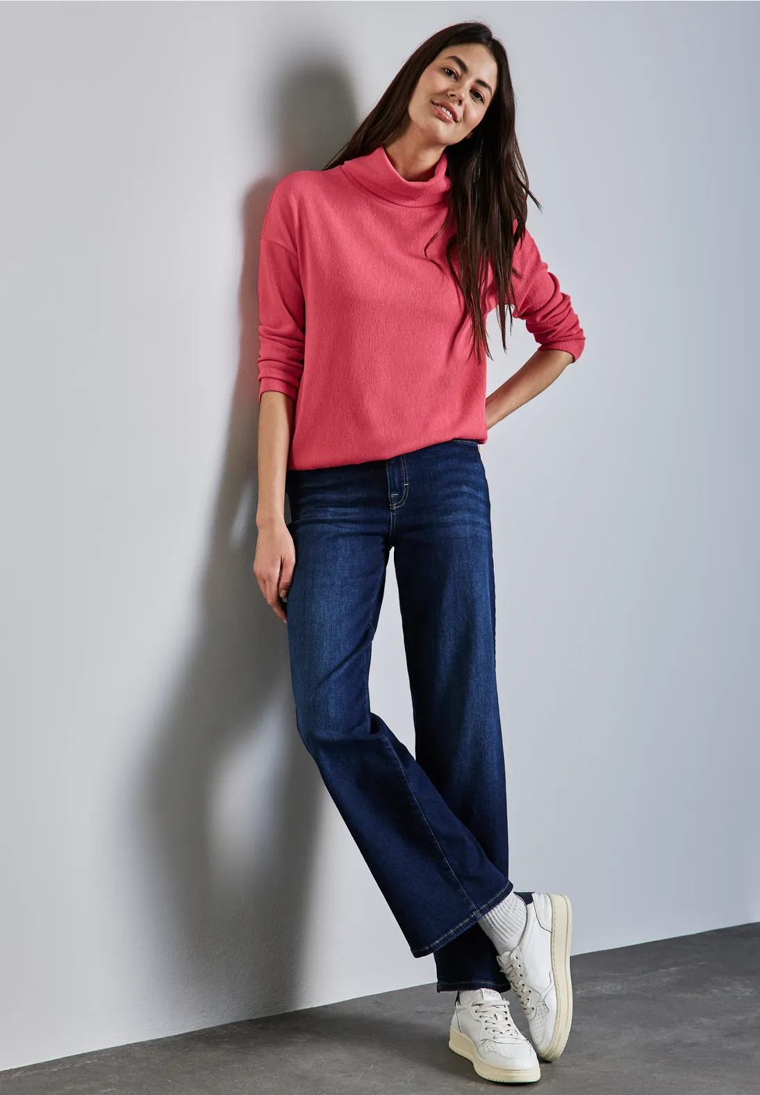 Street One shirt met lange mouwen, sjaalkraag en een zachte structuur. Dit Street One shirt heeft een elastische zoom en is gemaakt van een zachte materiaalmix met comfortabele stretch.