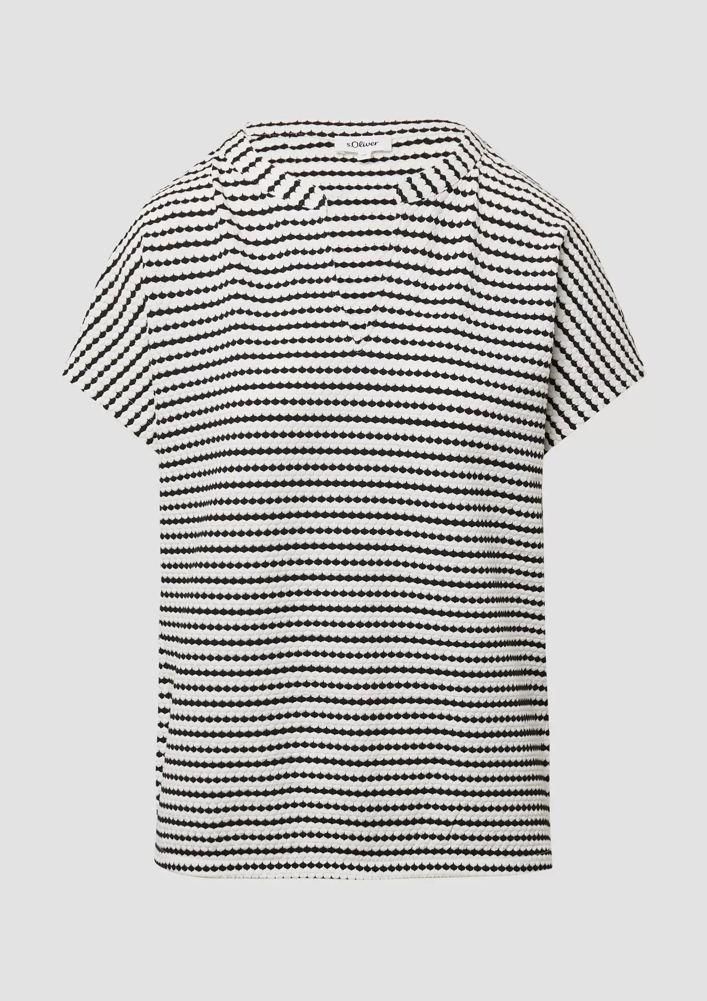 Gestreept S. Oliver shirt met korte mouwen, oversized schouders en een ronde hals met split.