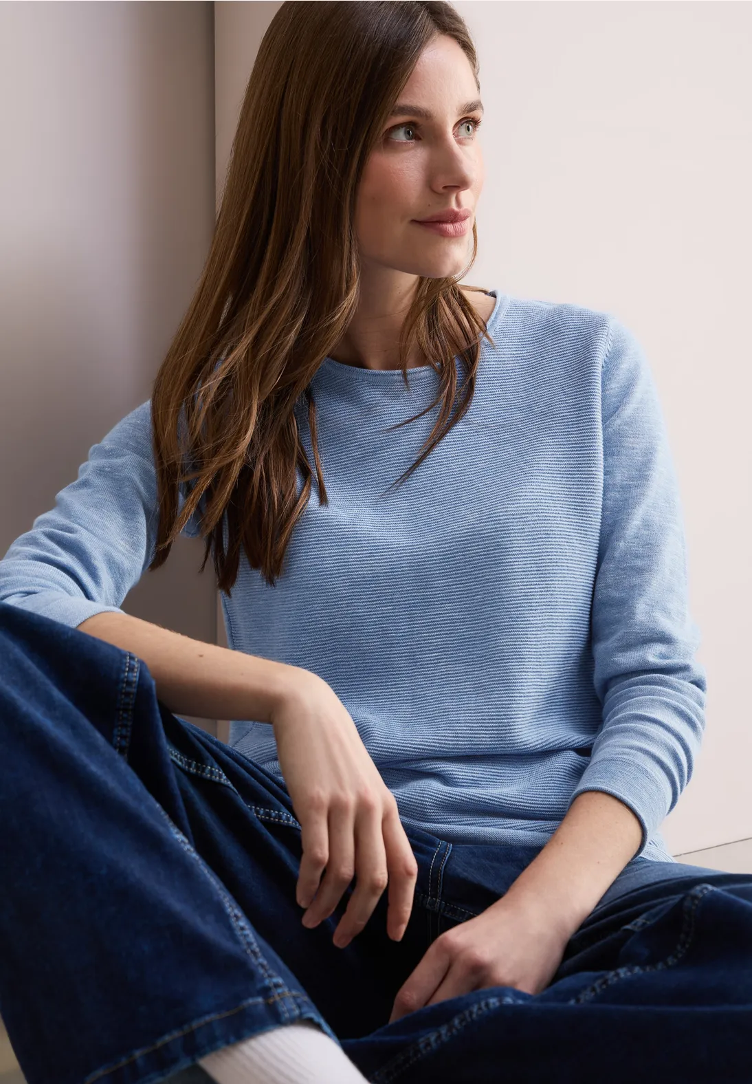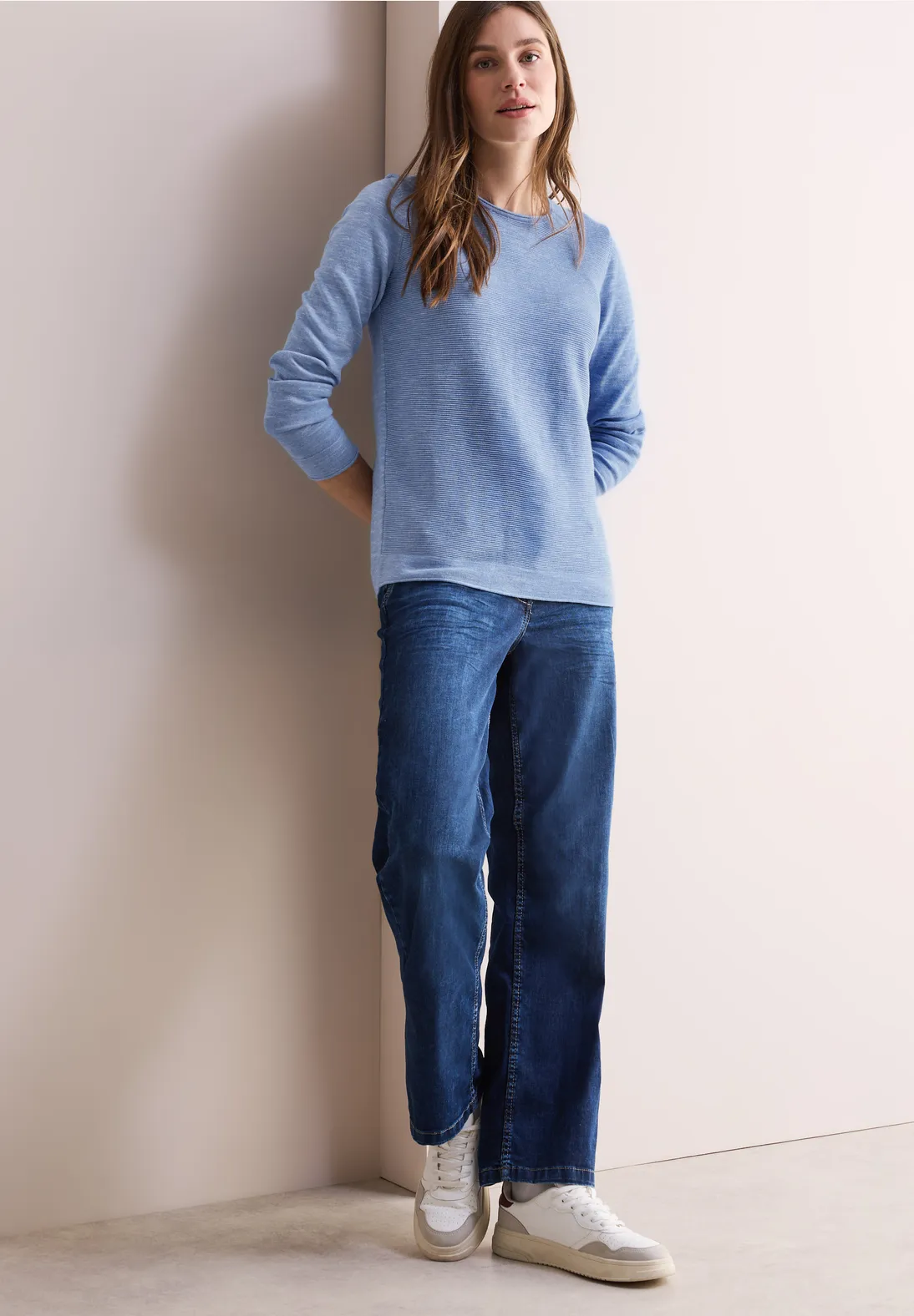 Cecil trui met lange mouwen, een ronde hals en een allover structuur. Deze Cecil trui is gemaakt van een zachte katoenmix.