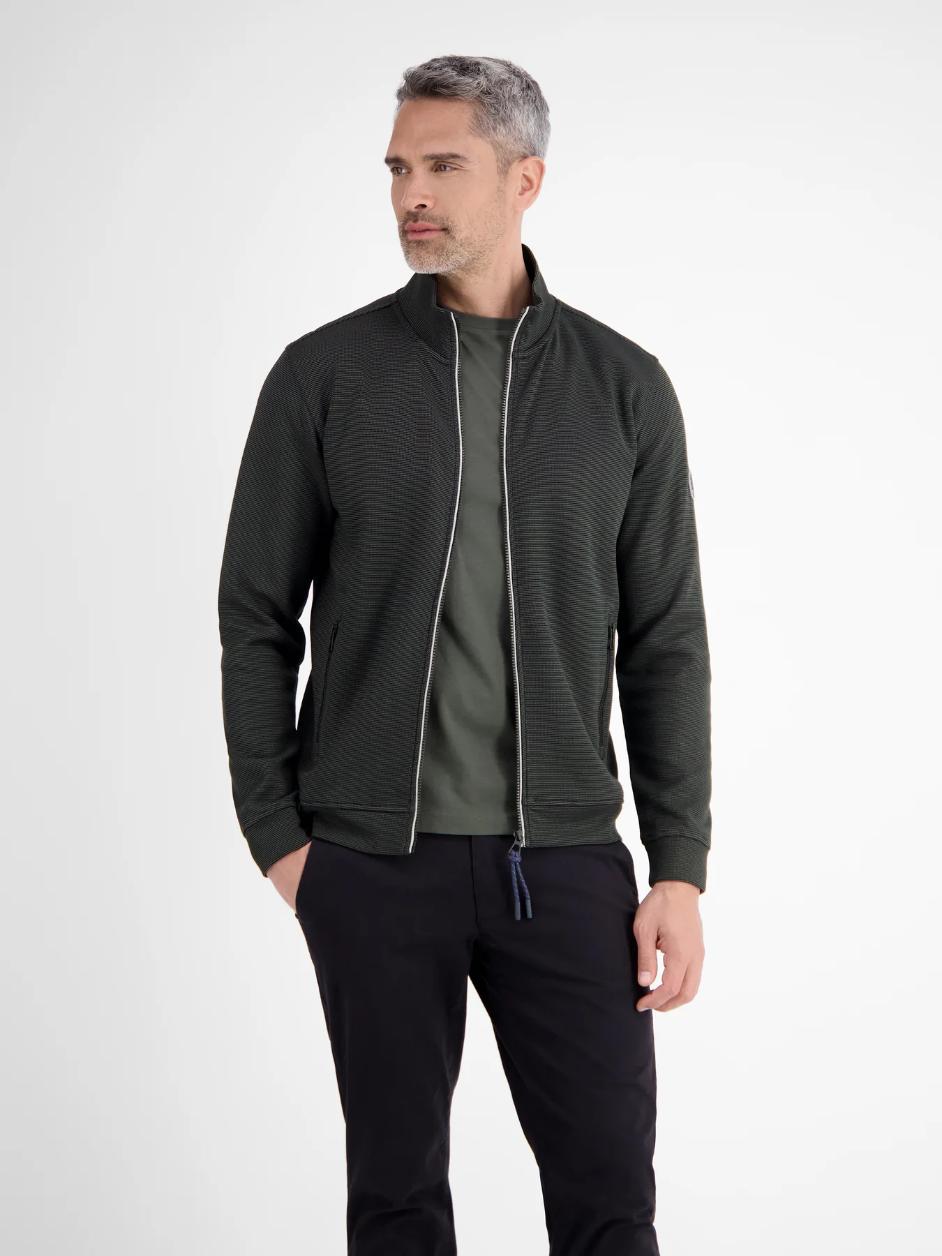 Sportief Lerros sweatvest met lange mouwen, een staande kraag en steekzakken met ritssluiting. Dit Lerros vest is gemaakt van een effen katoenmix. De ribboorden maken het geheel compleet.