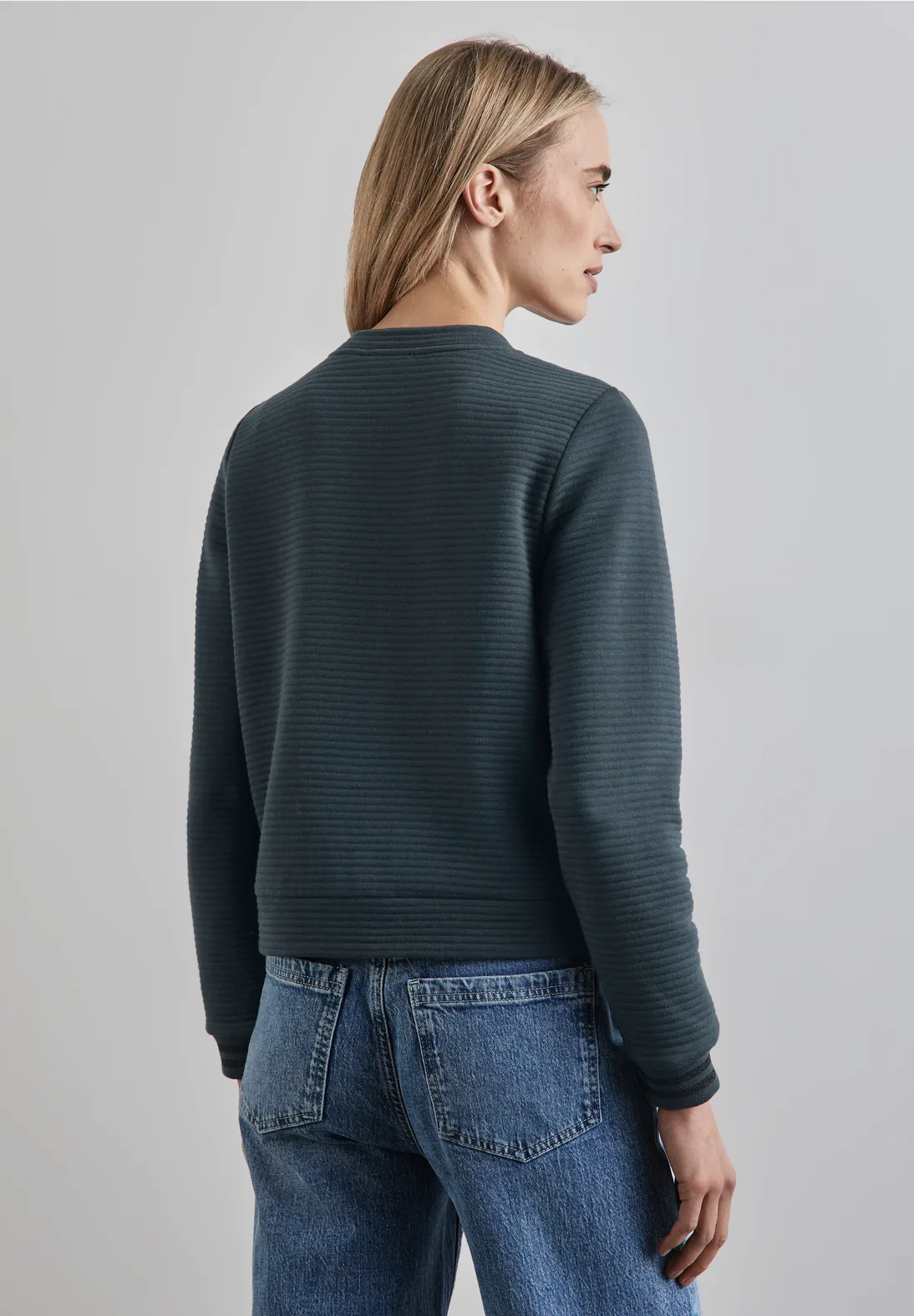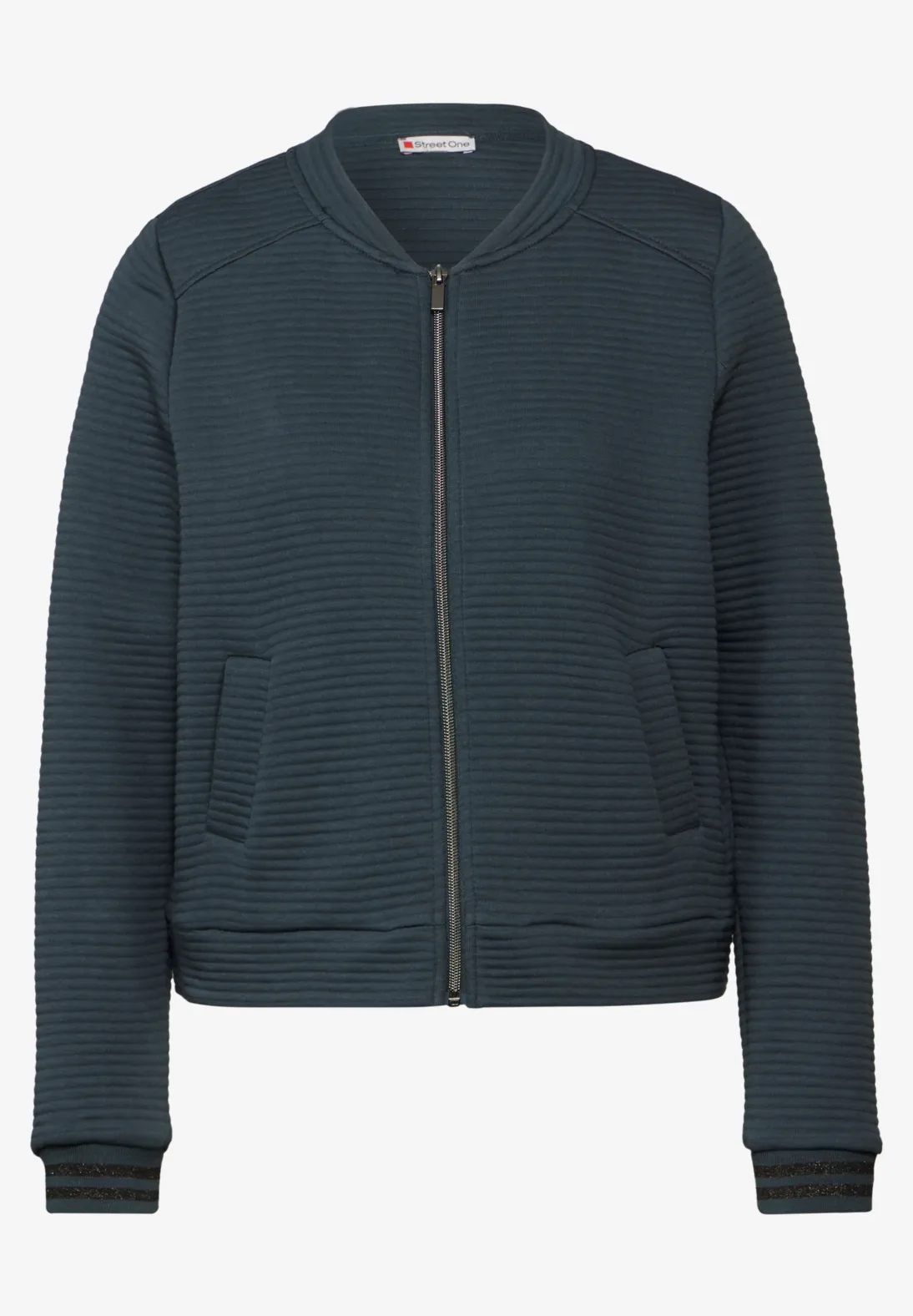 Street One sweatvest met lange mouwen, een ronde hals en een streepstructuur. De manchetten zijn afgewerkt met sportieve strepen. Dit Street One vest is gemaakt van een comfortabele katoenmix.