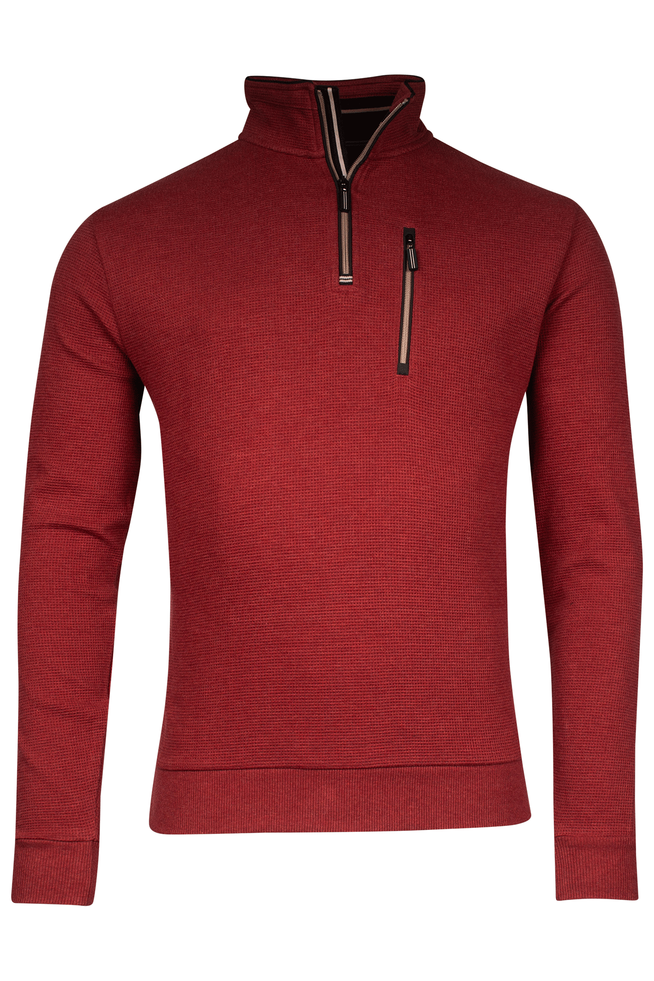 Baileys heren trui met een staande kraag met rits en sportieve ribboorden. Deze Baileys trui is gemaakt van comfortabel sweatmateriaal met een allover wafel structuur.