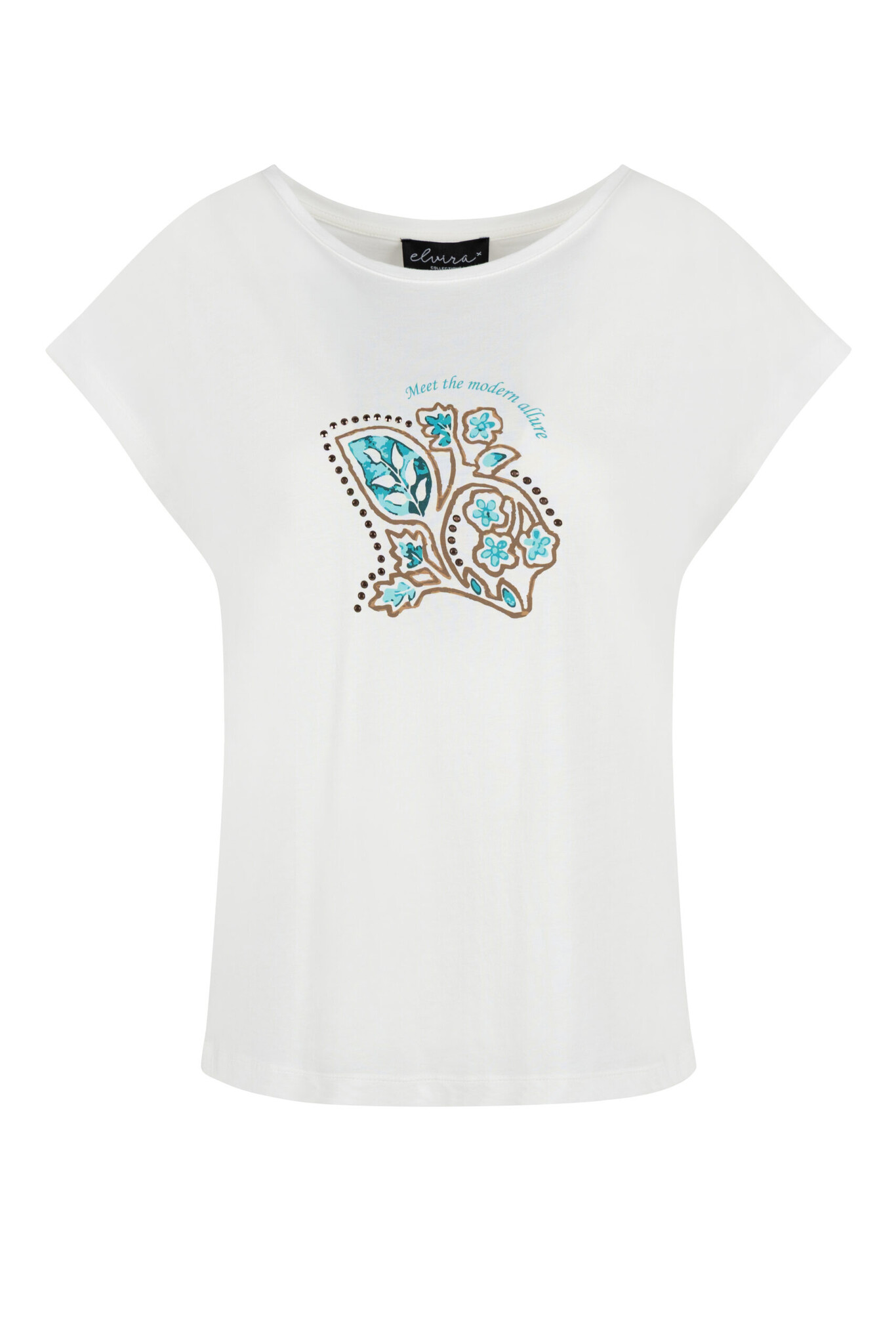 Elvira Collections Allure. Elvira Collections shirt met korte mouwen, een ronde hals en een frontprint. Dit Elvira shirt heeft oversized schouders en is gemaakt van een comfortabele jersey.