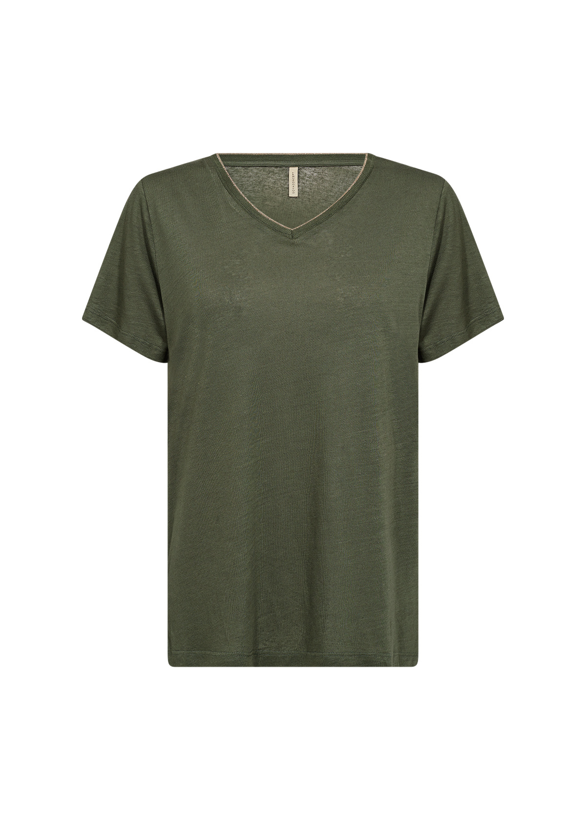 Soyaconcept SC-EMEL 3. Soyaconcept t-shirt met korte mouwen en een V-hals. Gemaakt van een zomerse linnenmix.