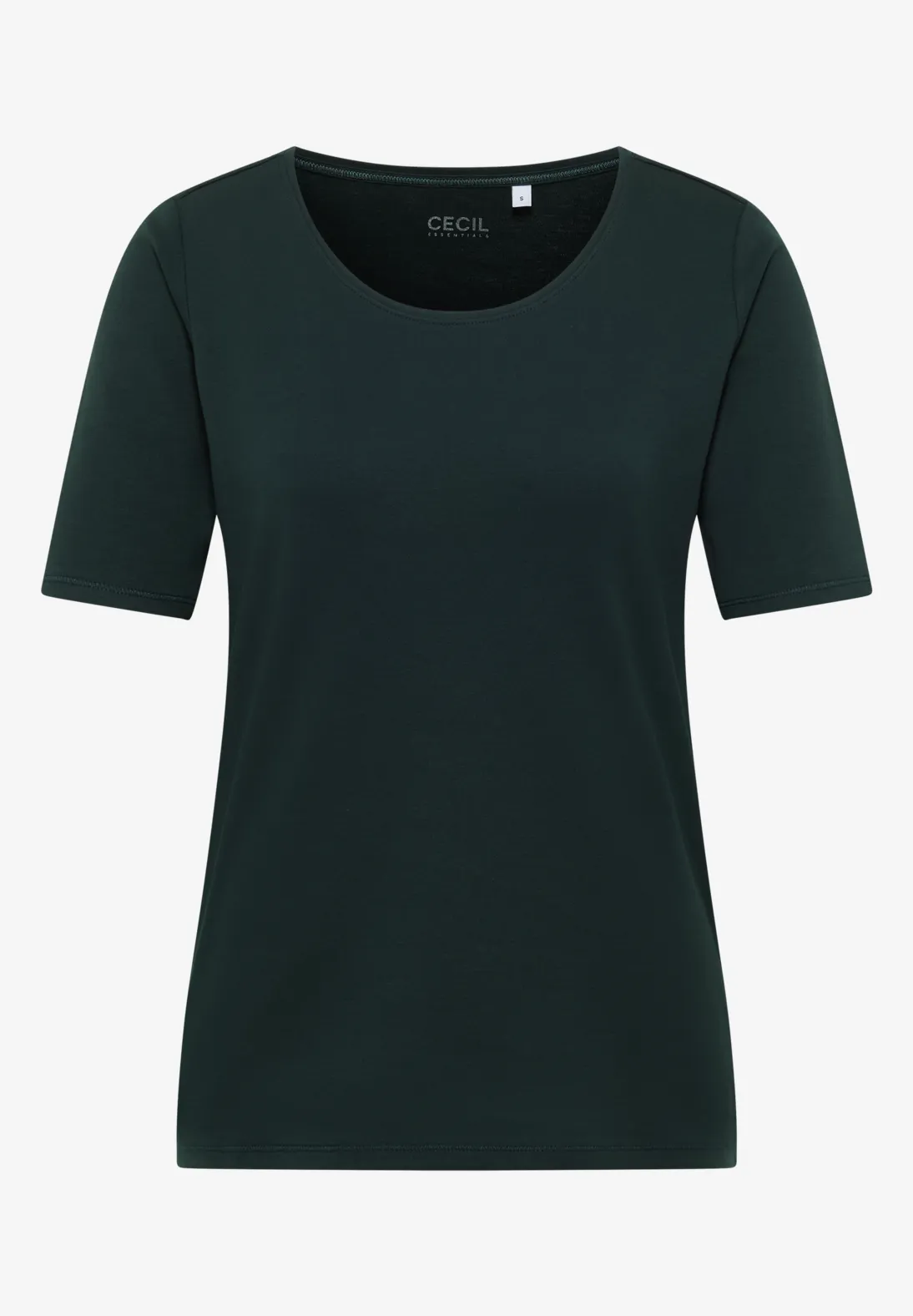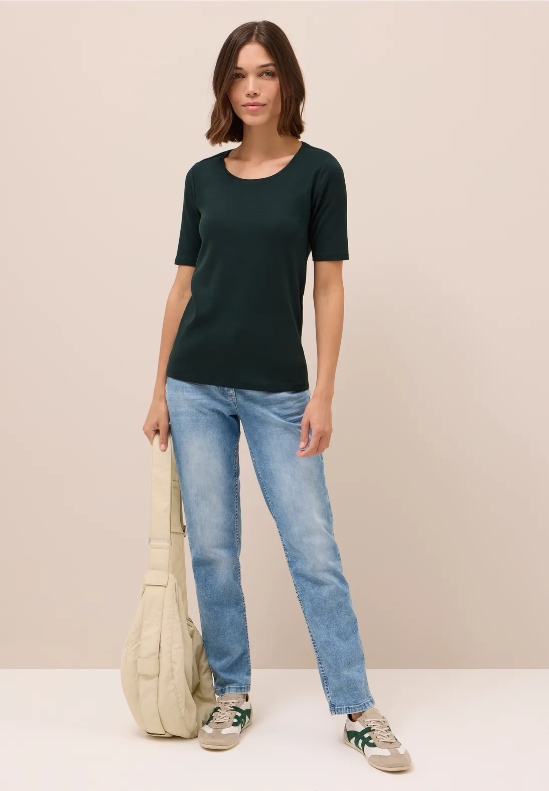 Cecil Lena. Cecil basis shirt met halflange mouwen, een ronde hals en een minimalistische look. Dit Cecil t-shirt is gemaakt van een zachte, stevige jersey van biologisch geteeld "organic cotton".