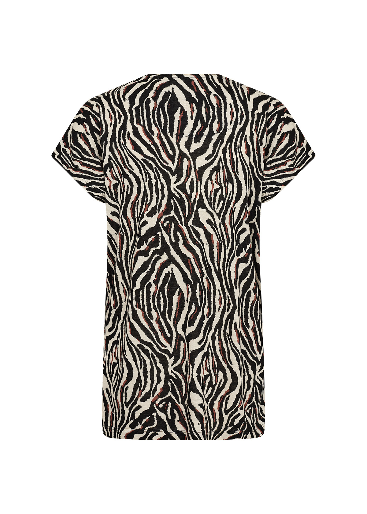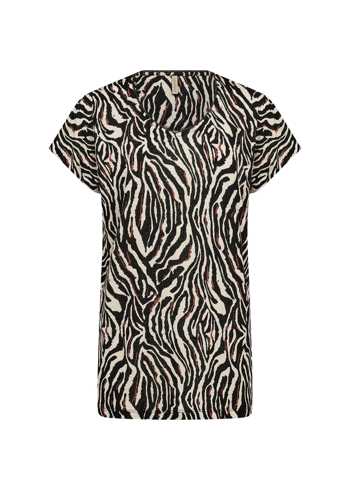 Soyaconcept SC-LENISE 5. Soyaconcept T-shirt met korte mouwen, een afgeronde V-hals en een dierenprint. Dit Soyaconcept shirt is gemaakt van een zomerse linnenmix.